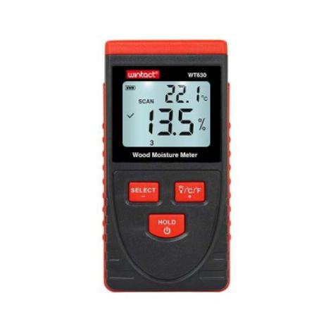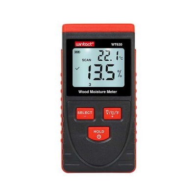 Широко застосовується в будівництві пристрій, що дозволяє виміряти вологість цегельної кладки, картону, деревини різних порід. Відноситься до безконтактним експрес-вимірювачів вологості. Його перевага – здатність аналізувати матеріал, не руйнуючи його. В основу роботи приладу покладений принцип проникнення електромагнітних сигналів в поверхню, яка аналізується. Цим експрес-вимірювач WINTACT WT630 вигідно відрізняється від будь-якого голчастого вимірника, так як руйнуючий метод вимірювання використовувати не завжди зручно, особливо якщо мова йде про таких матеріалах, як гіпсокартон, м'які і тверді сорти деревини, цегла або готові вироби, наприклад вже розкриті лаком (віконні рами, двері, стільниці).