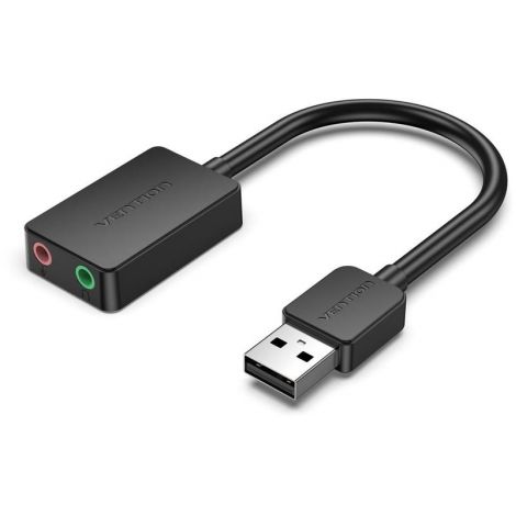 Звукова карта Vention USB Sound Card 2.0 Channel 0.15M, Black (CDYB0) підключається до ноутбука за допомогою порту USB і має 2 виходи: для мікрофона і для навушників. Установка драйверів - не потрібна.