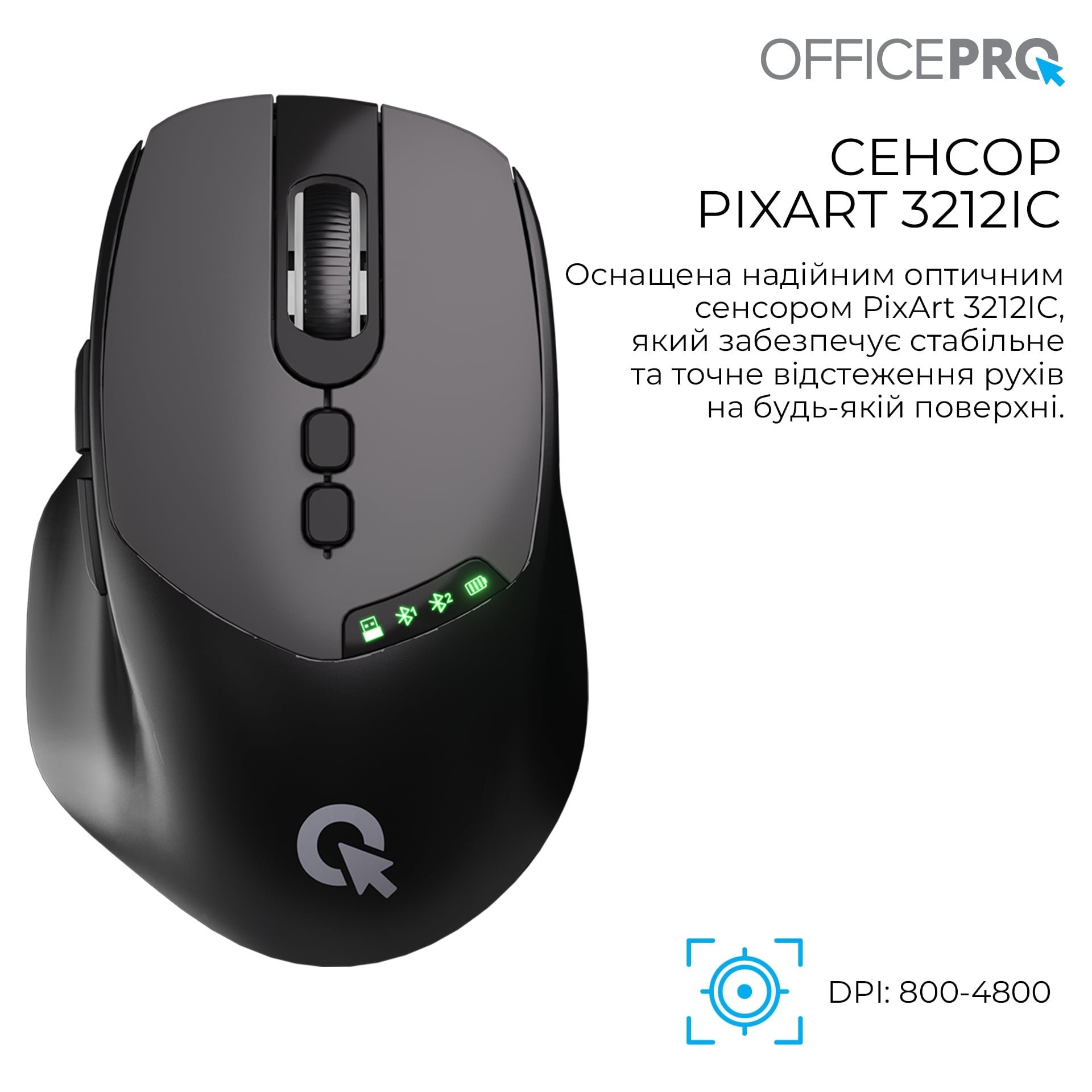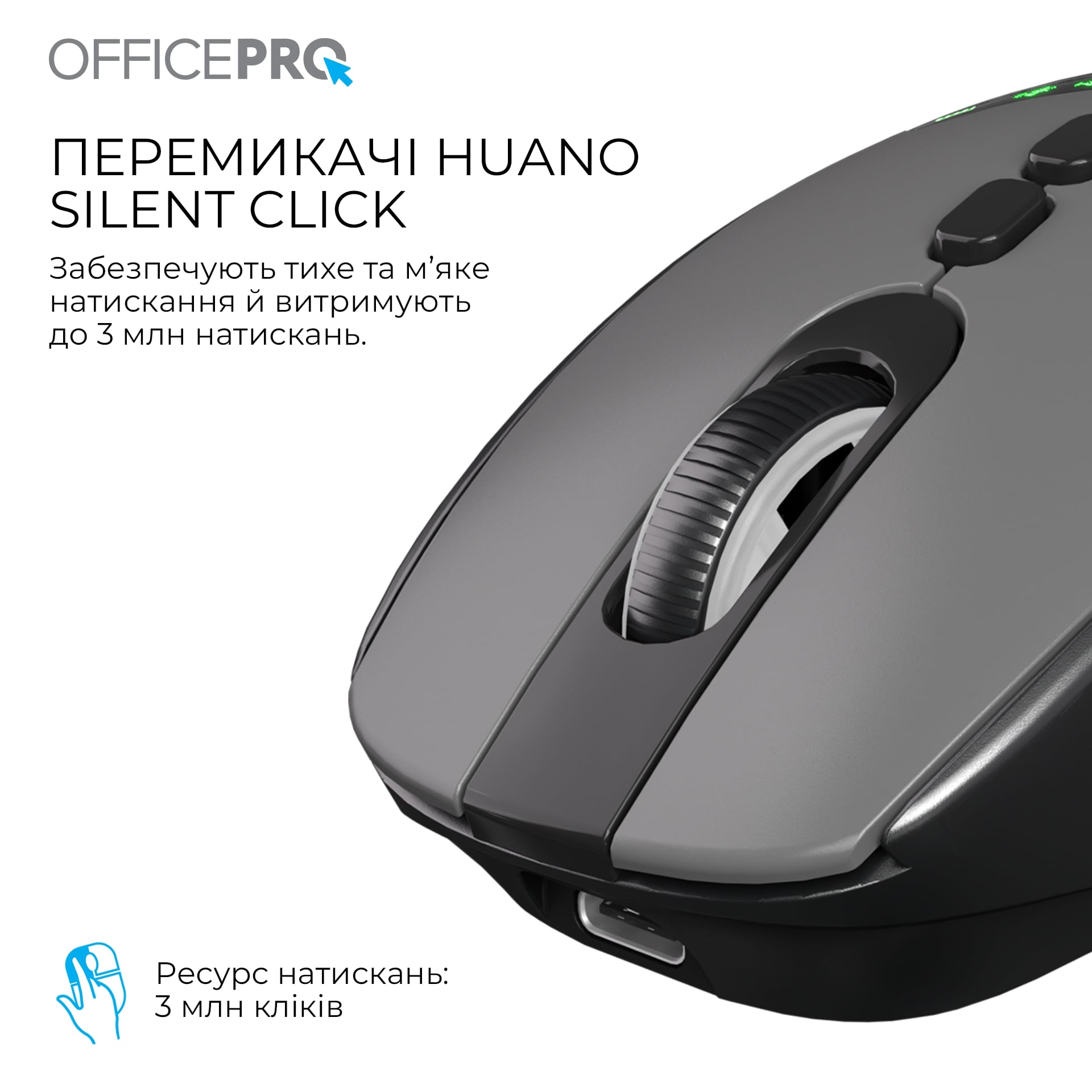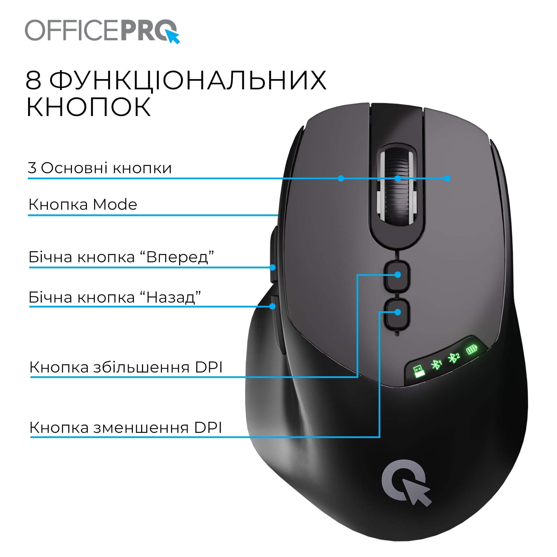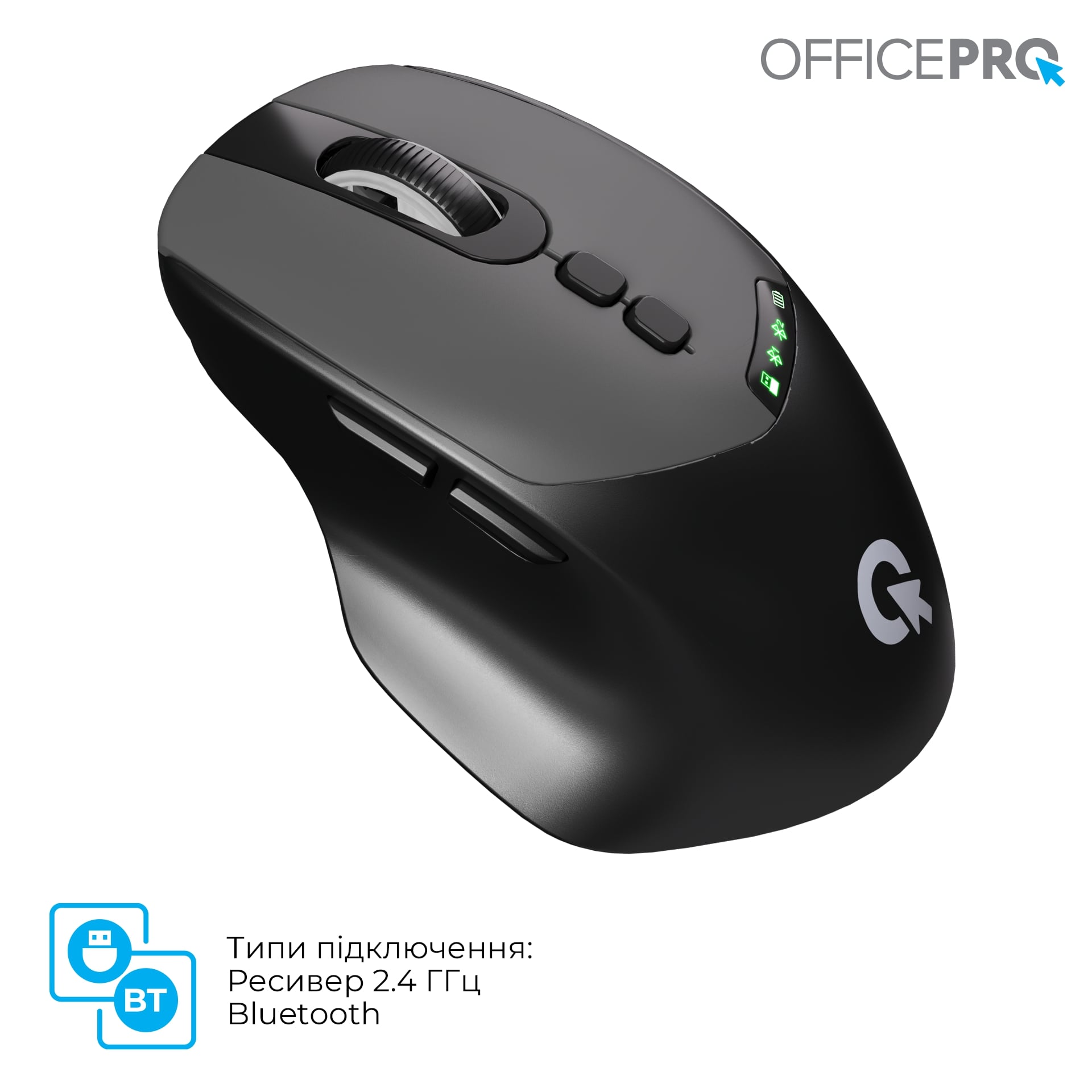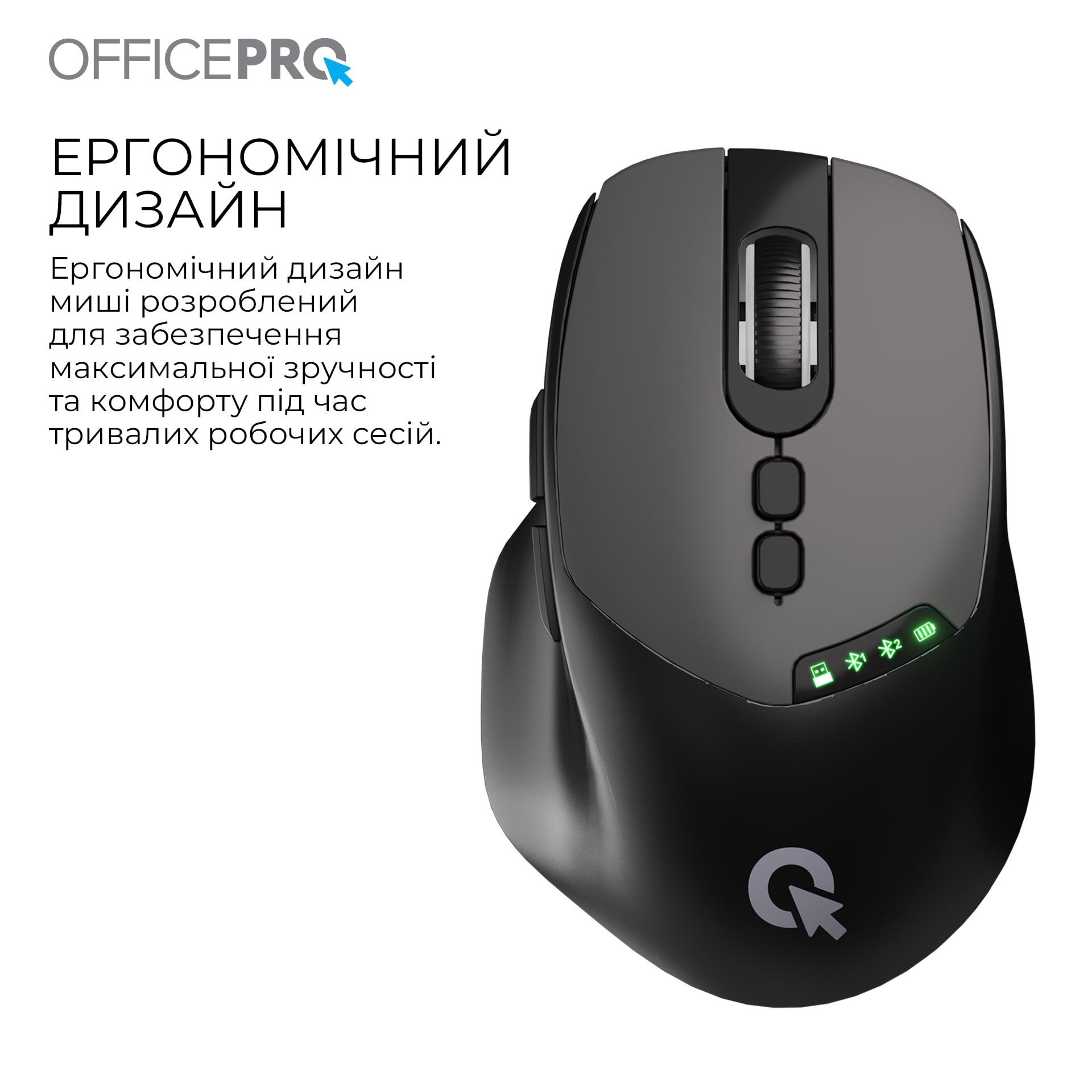Бездротова миша OfficePro M520 — це сучасне рішення для ефективної роботи вдома та в офісі. Завдяки підтримці двох режимів підключення — 2.4G та Bluetooth, вона забезпечує стабільне з’єднання з різними пристроями, дозволяючи швидко перемикатися між ними без затримок і перебоїв у роботі. Модель оснащена інтелектуальним LED-дисплеєм, який відображає активний режим підключення. M520 має вісім функціональних кнопок, що дозволяє розширити можливості керування та підвищити продуктивність. Вбудований акумулятор ємністю 400 мА·год забезпечує тривалий час автономної роботи без потреби частої підзарядки. Модель важить 81 грам, має ергономічну форму, що зручно лягає в долоню, запобігаючи втомі під час тривалої роботи. Її сучасний дизайн поєднує стиль і практичність, а високоякісний пластик гарантує надійність і довговічність. OfficePro M520 — це поєднання технологічності, комфорту та елегантності. Вона стане надійним помічником для щоденної офісної роботи, навчання чи роботи у дорозі.