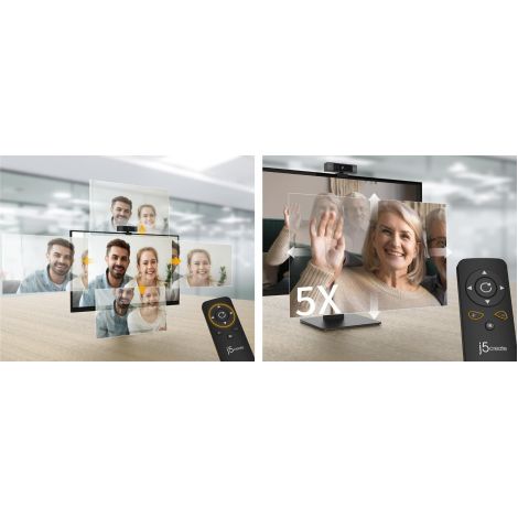 Веб-камера USB 4K Ultra HD з п’ятикратним цифровим зумом і пультом дистанційного керування, підтримує функцію ePTZ (електронне панорамування, нахил і зум). Камера підтримує роздільну здатність 4K при 30 Гц і оптимізує відеодзвінки за допомогою п’ятикратного цифрового зуму, що робить її ідеальною для зустрічей у великих конференц-залах, а також для використання однією особою. Крім того, веб-камера має вбудовану функцію поліпшення якості зображення при слабкому освітленні, вбудовані подвійний високоякісний мікрофон та два способи відключення об’єктива для забезпечення конфіденційності. Вона оснащена кабелем USB-C і перехідником на USB Type-A для роботи як зі старими, так і з новими пристроями. Ця веб-камера працює за принципом «підключи і працюй» і сумісна з популярними програмами, такими як Zoom, Microsoft Teams і Google Meet. Веб-камера сумісна з Windows, macOS і Chrome OS, що робить її ідеальною камерою для використання вдома або в офісі.