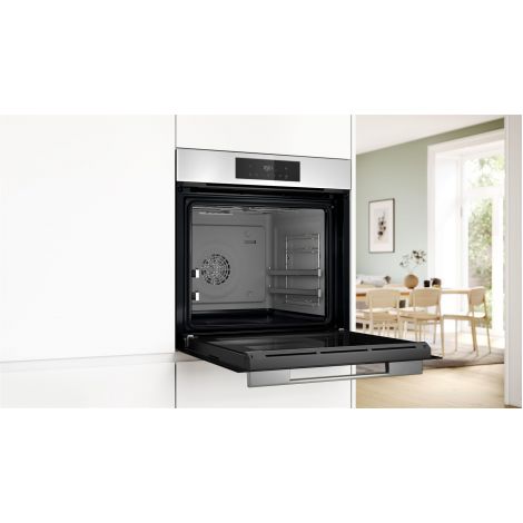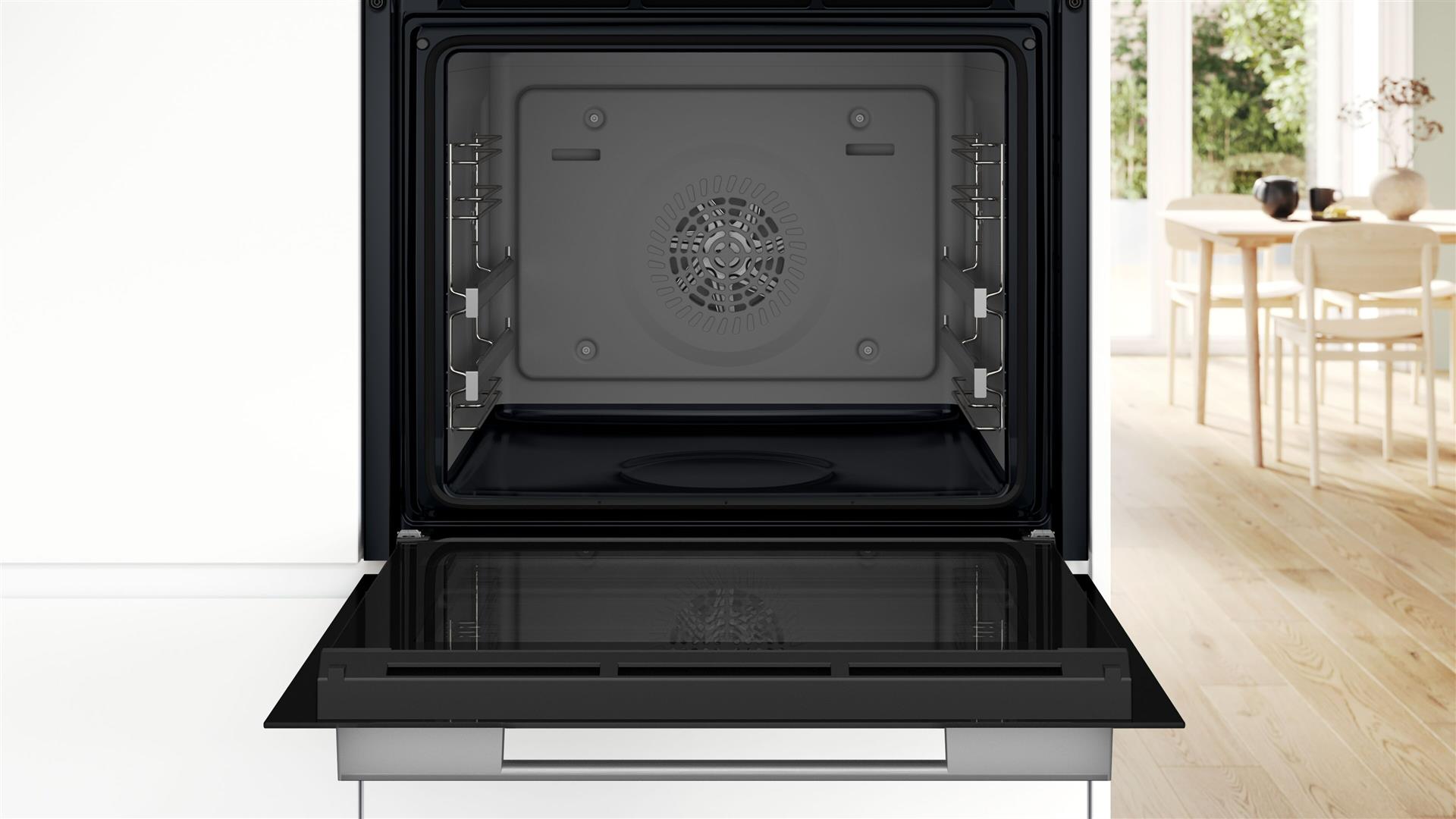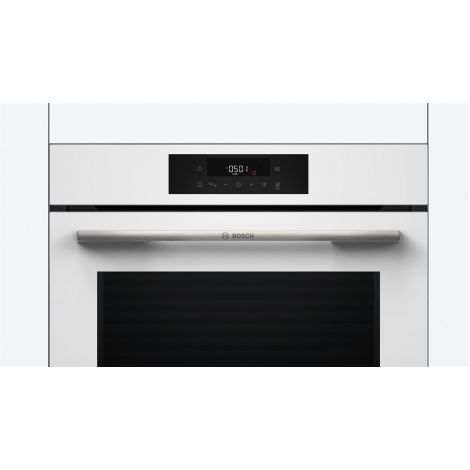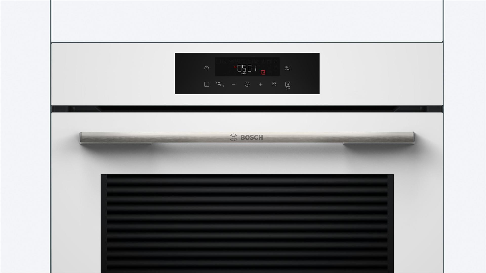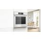Духова шафа Bosch Serie 6 HJG852YW0T з 8 різними видами нагрівання та 30 автоматичними програмами приготування. Температура регулюється в діапазоні від 30°C до 275°C, а внутрішній об’єм шафи складає 76 літрів. Вона оснащена системою висувного механізму з 5 рівнями та дворівневими телескопічними напрямними з функцією фіксування.