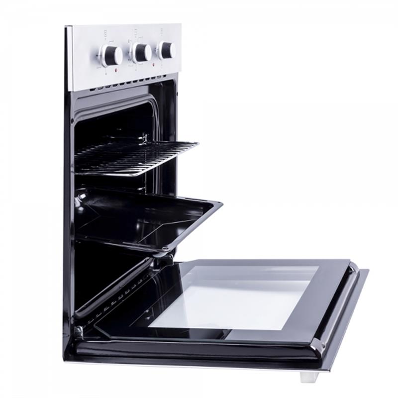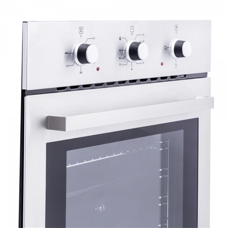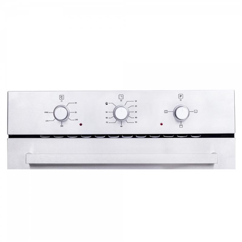 Встраиваемая электрическая духовка,ширина 60см, цвет/материал - нержавеющая сталь, 3 функции, конвекция, подсветка,механический таймер, проволочные направляющие, стандартные ручки, черная внутренняя эмаль, система очистки EasyClean, объем 64л, 1 глубокий противень, решетка.