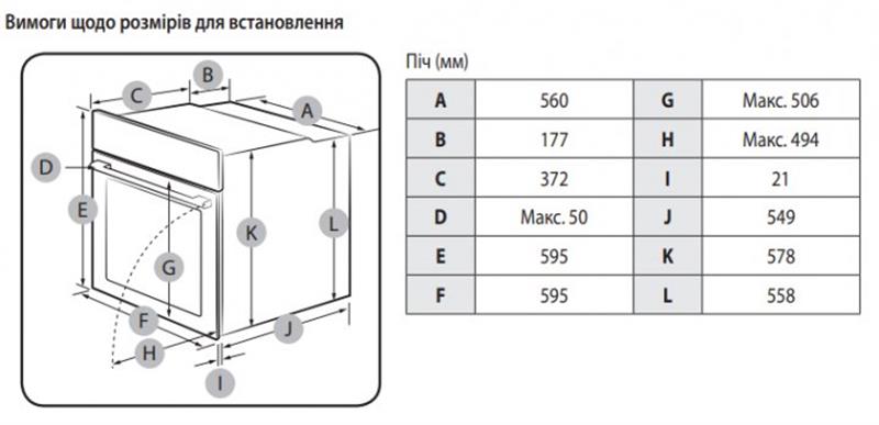 Телескопічні напрямні. Телескопічні напрямні дають змогу легко висувати решітки з великим і важким посудом. Тепер Ви не будете відчувати проблем, якщо буде необхідно завантажити і вийняти страву, а також перевернути, перекласти страву або полити її соусом. Корисний об'єм 68 літрів. Завдяки великому об'єму робочої камери, ви можете легко і швидко приготувати їжу для всієї родини і гостей прямо у великих деках або каструлях. Система каталітичного очищення. Каталітичне очищення істотно полегшує процедуру очищення стінок робочої камери. Каталітичний матеріал на задній стінці камери поглинає частинки жиру, що виникають під час смаження, які потім окислюються і, тим самим, нейтралізуються. Конвекція. Приготування стало ще більш рівномірним і ефективним із системою справжньої конвекції. Вентилятор розподіляє гаряче повітря по духовці, завдяки чому температура підтримується постійною скрізь усередині, тому ваші страви будуть готові ідеально незалежно від розміру та розташування. Захист від перепадів напруги. Функціональність вашої духової шафи в безпеці разом із захистом від перепадів напруги. Чутливий датчик запобігає проблемам, які можуть виникнути через нестабільність під'єднання, потужність стабілізується та захищає духову шафу від пошкоджень. Більше смачної їжі. Готуйте більше й ефективніше з меншими клопотами з очищення. Конвекція забезпечує постійне нагрівання в кожному кутку, тому все готується швидко й ефективно. Система самоочищення зберігає внутрішню частину духової шафи в чистоті та порядку. І ви можете приготувати набагато більше або набагато більше страв з великою духовкою на 68 л корисного об'єму.