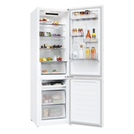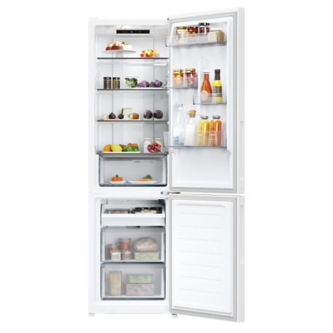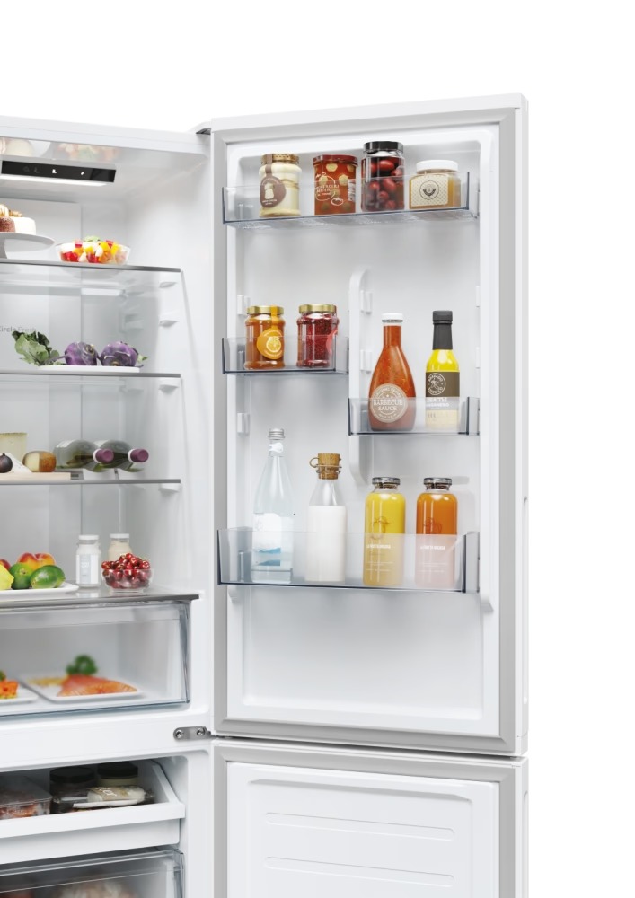 Fresco 300 Fresco 300 — ваш повсякденний помічник у зберіганні свіжості продуктів. Завдяки передовим технологіям і першокласному дизайну преміум-класу, який відповідає стилю вашої кухні, він пропонує вам додаткову допомогу та робить ваше життя легким та простішим. Ідеальний клімат для делікатних продуктів завдяки зоні свіжості 0°C Завдяки зоні свіжості 0°C ви можете регулювати температуру ящика відповідно до ваших потреб: режим 0° ідеально підходить для риби та м’яса; при необхідності цю функцію можна вимкнути і використовувати зону із температурою холодильного відділення. Максимальна місткість при ширині 55 см Розмір більше не проблема! Завдяки місткості 279 літрів при ширині лише 55 см і великій морозильній камері цей комбінований холодильник надасть вам увесь простір, необхідний для зберігання великої кількості продуктів, навіть найбільших. Створено для вашої кухні Холодильник ідеально впишеться в дизайн вашої кухні: ручки та дизайн дверцят ідеально підходять до кухонної стільниці, а приховані петлі дозволяють фіксувати відчинення дверцят на 90°. Circle Fresh - довше збереження свіжості Технологія Circle Fresh довше зберігає смак та соковитість продуктів. Завдяки технології бічного повітряного потоку температура та свіжість підтримується ще краще, запобігаючи висиханню.*Результати випробувань, виданих незалежною зовнішньою технічною лабораторією, порівнюють модель з технологією Circle Fresh із моделлю з технологією прямого повітряного потоку Відкрийте для себе світ додаткового контенту з мобільним застосунком hOn Застосунок hOn покращує ваші враження від охолодження, пропонуючи ряд інноваційного вмісту та функцій, створених для ефективнішого догляду за продуктами та оптимізації продуктивності. КЛАС А+ Цей холодильник має клас енергоефективності А+. Як порівняти з приладами класу А, він зменшує споживання на 20%, тож ви економите енергію, заощаджуєте кошти та дбаєте про довкілля. Насолоджуйтеся додатковим простором у морозильній камері City Fresco — це місткий холодильник із двома великими морозильними ящиками, що ідеально підходить для зберігання великогабаритних і розфасованих продуктів. Крім того, додавши лоток для легкого доступу, ви можете легко організувати морозильне відділення відповідно до своїх потреб.
