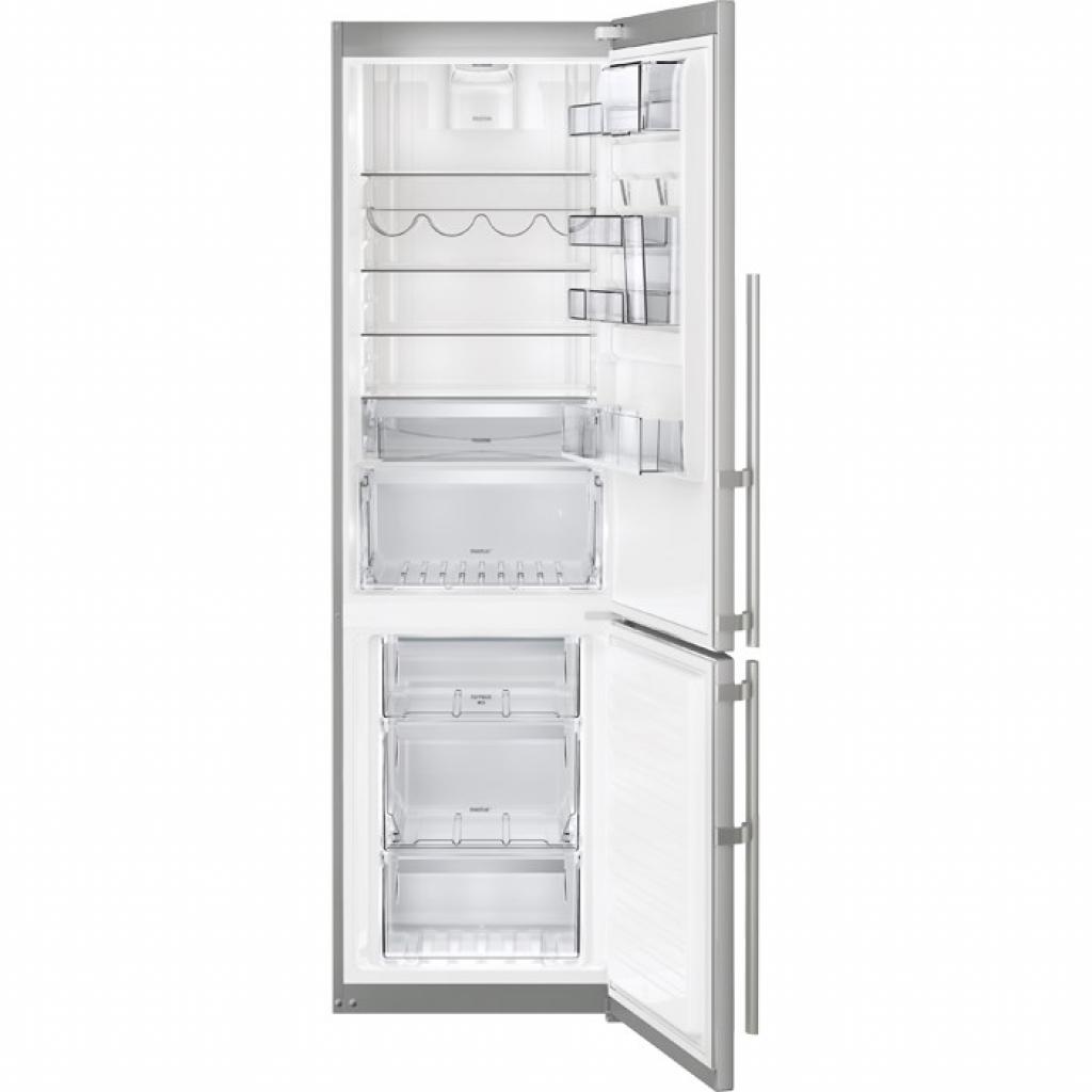 Интенсивный режим заморозки ActionFreeze обеспечивает интенсивное замораживание продуктов с сохранением их вкуса и витаминов. Для очистки воздуха внутри холодильника от нежелательных запахов и других загрязнений имеется фильтр TasteGuard. Холодильное отделение оснащено зоной свежести для более качественного хранения продуктов, 4 стеклянными полками, 5 дверными корзинами и одним вместительным ящиком для овощей. Морозильное отделение разделено на три секции. Данная модель оснащена информационным дисплеем и энергоэффективным светодиодным освещением в обоих отделениях. Дверца холодильника