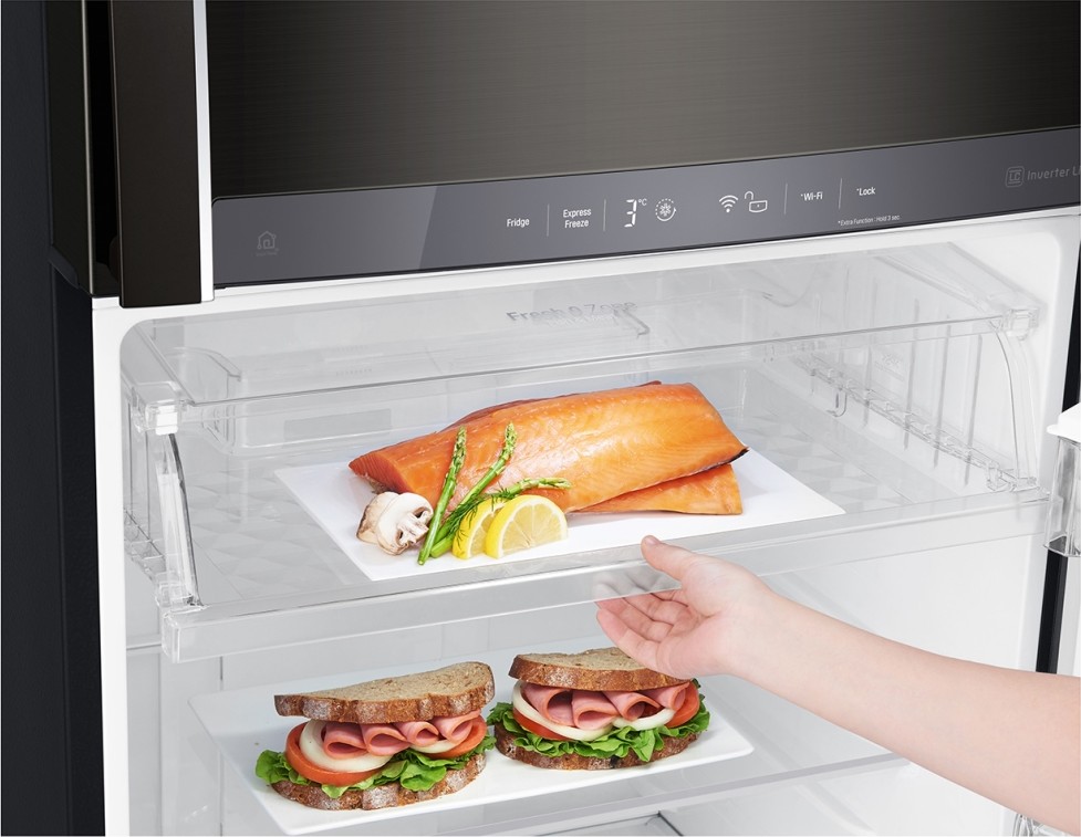 Инверторный Линейный Компрессор Инверторный линейный компрессор LG отвечает самым высоким требованиям потребителей в плане экономии электроэнергии и долговечности и поддержания свежести продуктов. Класс энергоэффективности А ++ Холодильник LG с линейным инверторным компрессором имеет уровень энергоэффективности А ++ и потребляет на 32% меньше электроэнергии. Гарантия на компрессор такого типа - 10 лет. Linear Cooling Храните продукты свежими с новой системой постоянного контроля температуры. Новая система контролирует температуру с отклонением ± 0.5 ? и обеспечивает свежесть дольше чем в обычной системе охлаждения. Door Cooling + LG Door Cooling TM делает температуру внутри холодильной камеры более равномерной и прохладной на 35% быстрее, чем обычная система охлаждения. Минимальное отклонение от заданной температуры в холодильном отделении и хранящихся на дверце холодильника. Multi Air Flow Холодный воздух циркулирует через все воздушные клапаны и равномерно охлаждает холодильное отделение. технология циркуляции холодного воздуха значительно улучшена по сравнению с холодильниками, работающих на стандартной системе No Frost Total No Frost Холодильники с технологией LG Total No Frost больше не требуют размораживания холодильной и морозильной камер. Fresh 0 Zone Зона свежести Fresh 0 Zone (0 ° C) - специальное отделение для хранения свежего мяса и морепродуктов без замораживания.