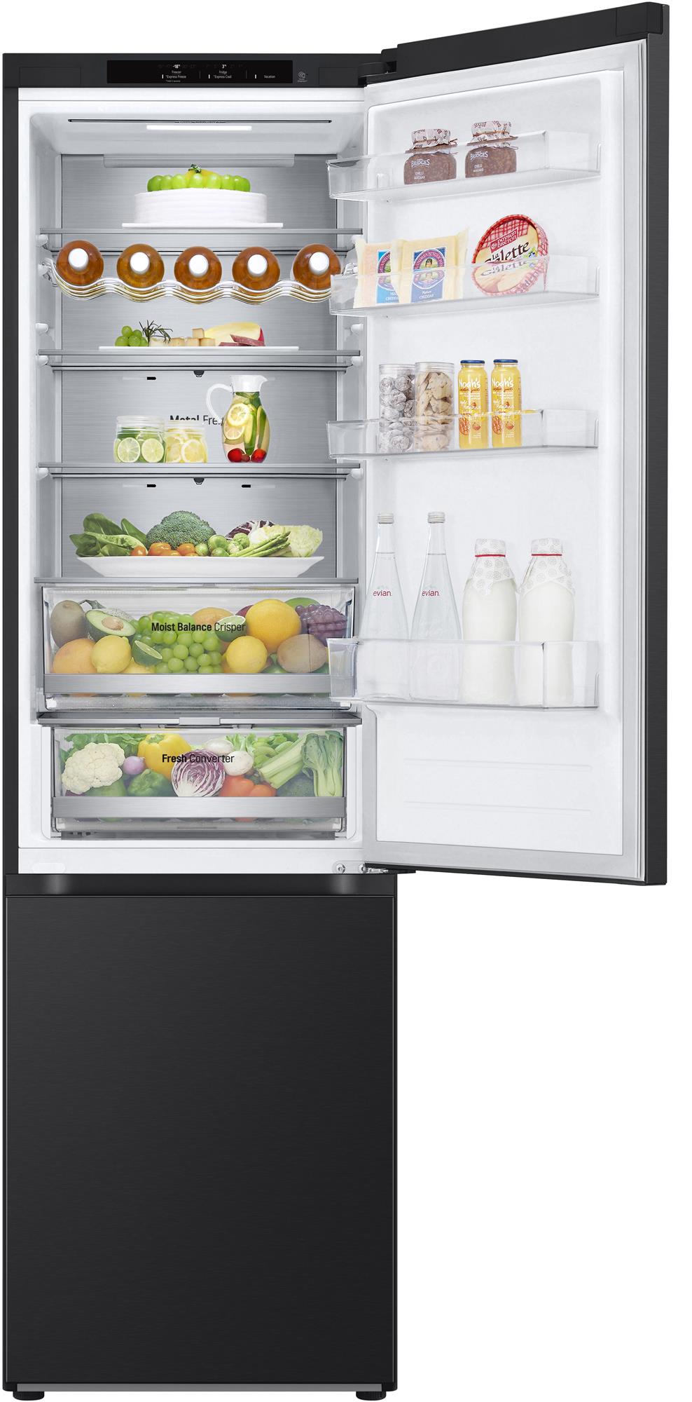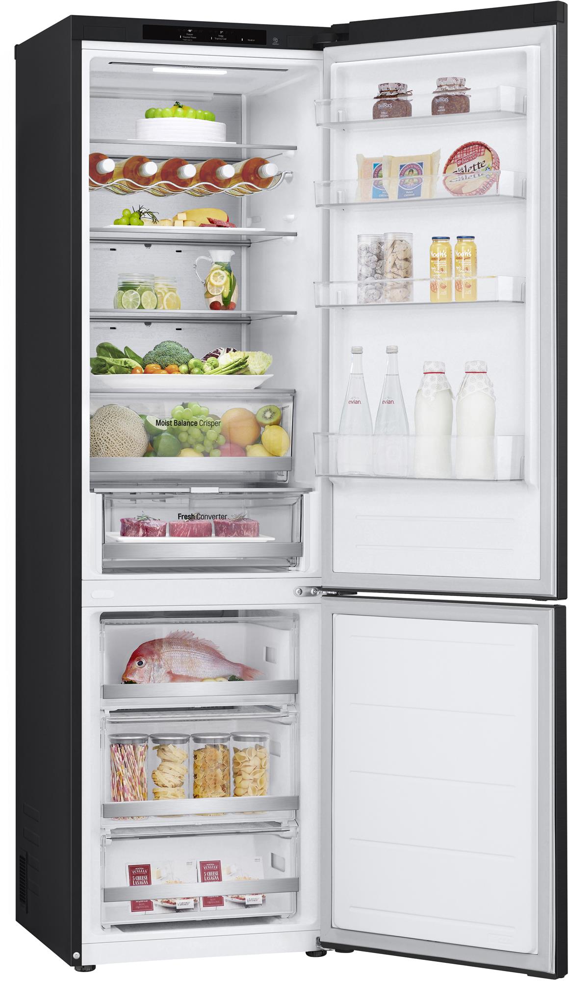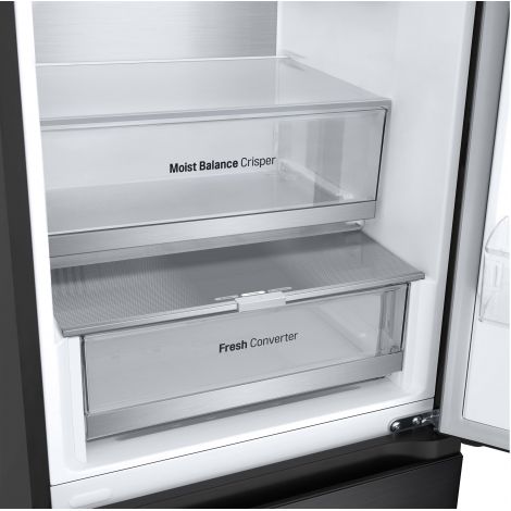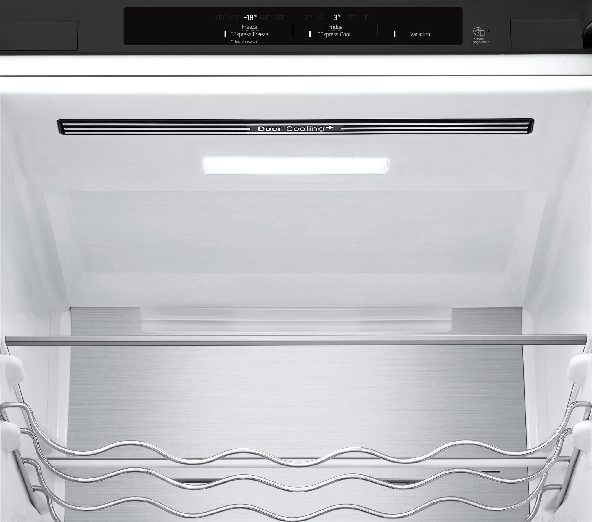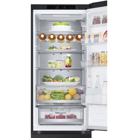 Холодильник із плоскими дверима органічно вбудовується в мінімалістичний дизайн кухні, створюючи гармонійну, сучасну композицію. Особливості: Технологія DoorCooling+: додатковий потік холодного повітря з верхньої частини холодильника для збереження свіжості продуктів, зокрема тих, що зберігаються у дверях. Свіжість із Multi Air Flow: холодне повітря циркулює по всіх камерах холодильника, утворюючи холодну екосистему для зберігання продуктів у свіжості. Розумна організація простору: безумовний комфорт на кухні. Зберігання до п’яти пляшок вина: винна полиця вміщує до п’яти пляшок та за бажання може бути прибрана. Збільшений об’єм морозильної камери: об’ємна морозильна камера для зберігання великого запасу продуктів. Просте і зручне зберігання: удосконалена складна полиця тепер має два етапи складання, що дає змогу зберігати великі та габаритні продукти або страви. Технологія FRESHBalancer: оптимальний рівень вологості. Технологія FRESHConverter: оптимальна температура. Технологія Hygiene Fresh+ вбиває до 99,9% бактерій. Енергоефективність і надійність: розумний інверторний компресор LG виводить енергоефективність на новий рівень.