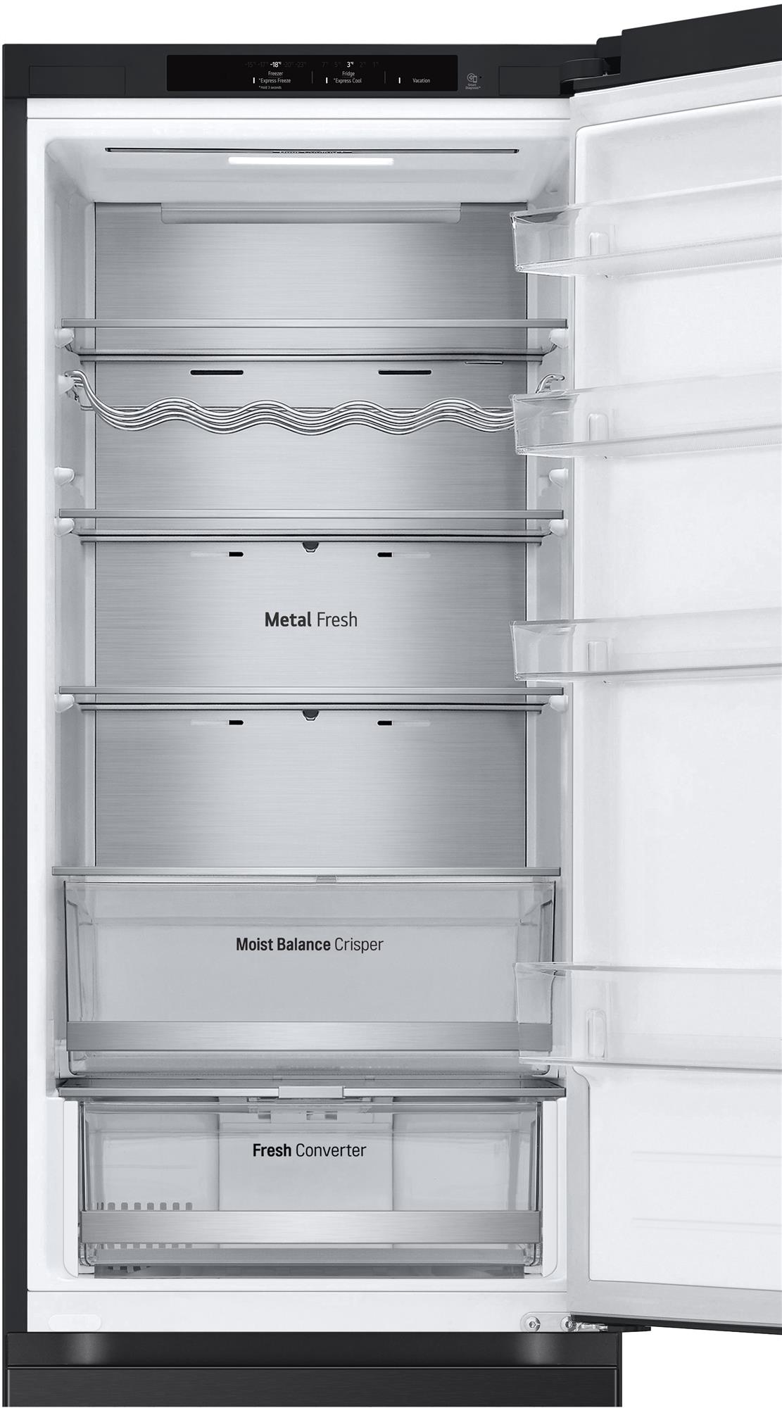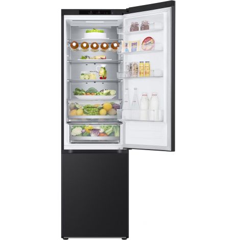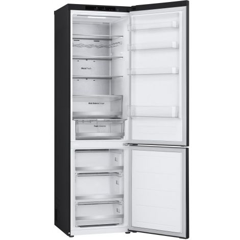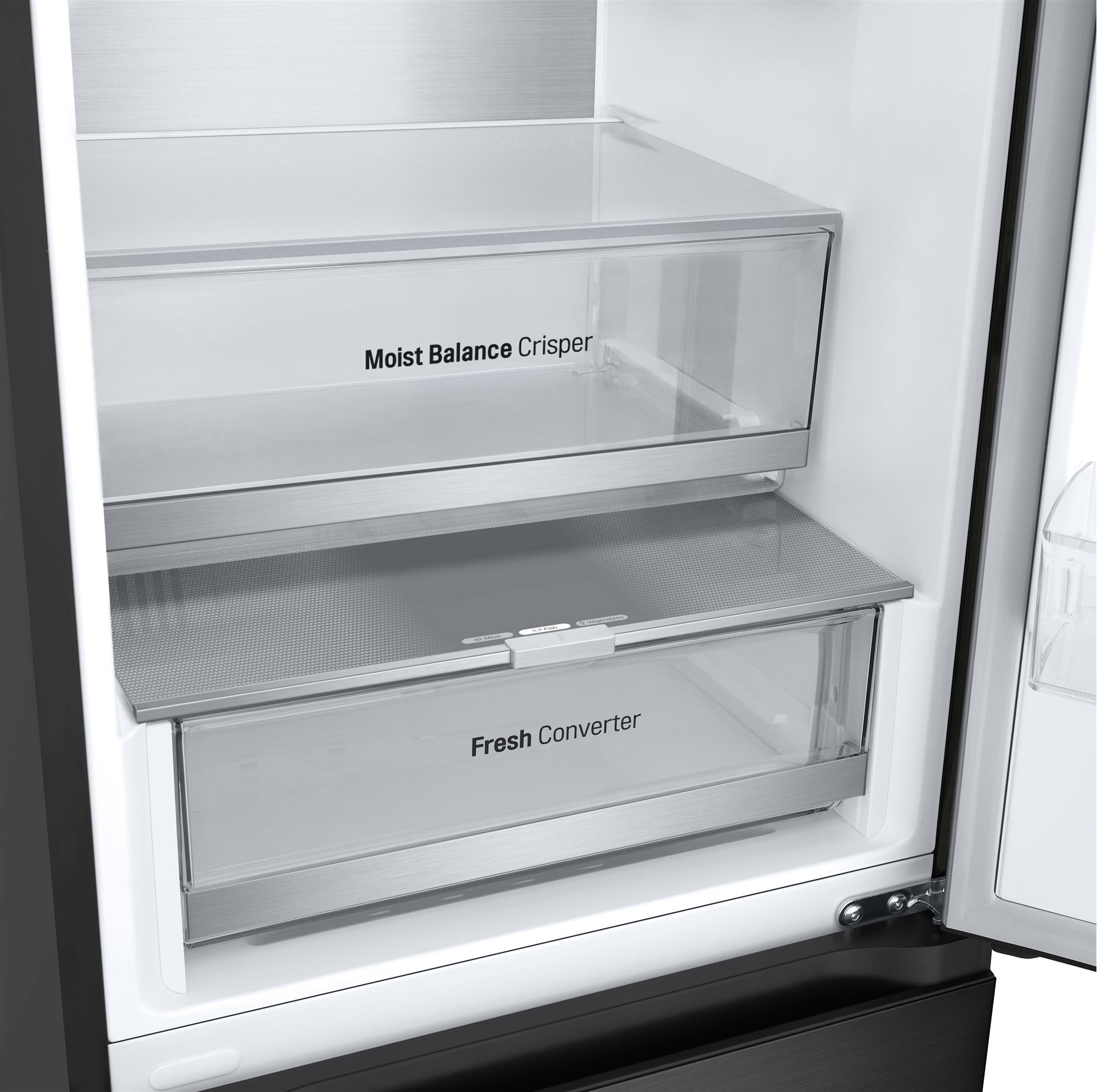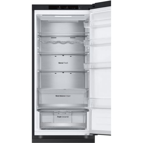 Холодильник із плоскими дверима органічно вбудовується в мінімалістичний дизайн кухні, створюючи гармонійну, сучасну композицію. Особливості: Технологія DoorCooling+: додатковий потік холодного повітря з верхньої частини холодильника для збереження свіжості продуктів, зокрема тих, що зберігаються у дверях. Свіжість із Multi Air Flow: холодне повітря циркулює по всіх камерах холодильника, утворюючи холодну екосистему для зберігання продуктів у свіжості. Розумна організація простору: безумовний комфорт на кухні. Зберігання до п’яти пляшок вина: винна полиця вміщує до п’яти пляшок та за бажання може бути прибрана. Збільшений об’єм морозильної камери: об’ємна морозильна камера для зберігання великого запасу продуктів. Просте і зручне зберігання: удосконалена складна полиця тепер має два етапи складання, що дає змогу зберігати великі та габаритні продукти або страви. Технологія FRESHBalancer: оптимальний рівень вологості. Технологія FRESHConverter: оптимальна температура. Технологія Hygiene Fresh+ вбиває до 99,9% бактерій. Енергоефективність і надійність: розумний інверторний компресор LG виводить енергоефективність на новий рівень.