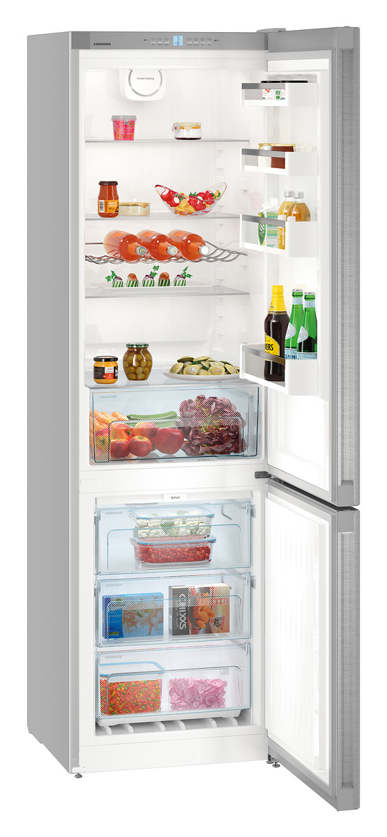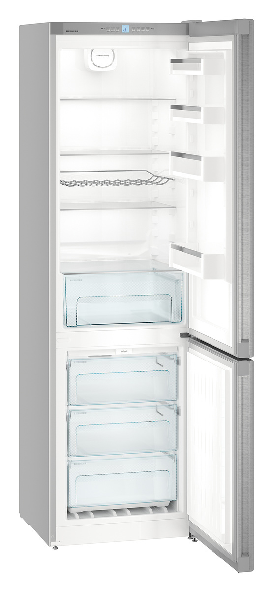 Система NoFrost Благодаря использованию современных профессиональных технологий охлаждения оборудование Liebherr с системой NoFrost обеспечивает длительное хранение замороженных продуктов. Замораживание осуществляется при помощи циркуляции охлажденного воздуха и отвода избыточной влаги. В результате этого в морозильной камере не образуется лед, а замороженные продукты питания не покрываются слоем инея. С системой NoFrost Вы позабудете о необходимости оттаивания морозильной камеры. Система DuoCooling Благодаря наличию двух независимых холодильных контуров система DuoCooling позволяет точно отрегулировать температуру в холодильной и морозильной камерах комбинированного холодильника-морозильника. Также благодаря этому отсутствует воздухообмен между холодильной и морозильной камерами. Это препятствует передаче запаха и «обветриванию» хранящихся продуктов питания. Основные электронные органы управления Электронная система управления оснащена цифровым дисплеем температуры, на который выводится также информация о настройках. Полка для бутылок Полка для бутылок с привлекательным дизайном приспособлена для практичного хранения напитков. На полке можно компактно разместить бутылки.