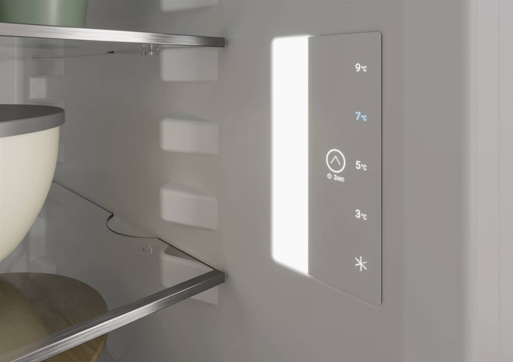 SuperCool Ви хочете, щоб ваш холодильник підтримував оптимальну температуру, навіть якщо ви щойно поклали в нього зігріті сонцем покупки з ринку? Для цього ми передбачили режим SuperCool. Коли він активується, Liebherr збільшує свою холодопродуктивність, доки свіжі продукти не охолонуть до потрібної температури. Потім SuperCool відключається автоматично, але не пізніше, ніж через 12 годин. Світлодіодне освітлення Світлодіодне бічне підсвічування освітлює внутрішній простір збоку для хорошого огляду продуктів. Додаткова особливість: світлодіоди розташовані перед скляними полицями, тому навіть повний холодильник освітлюється добре. TouchControl За допомогою TouchControl можна легким торканням встановити у Liebherr температуру 3, 5, 7 або 9°. Дуже просто та ефективно. Тонка кнопка вбудована в камеру залишає багато місця для зберігання свіжих продуктів. DoorStop Висувний дверний стопор DoorStop допоможе зберегти свіжість і запобігти утворенню запаху у вашому Liebherr. Запобігає утворенню запаху, утримуючи двері відчиненими, коли пристрій не використовується. Економія часу та енергії. Вбудована ручка Особлива та функціональна: Завдяки вертикальній, суцільній та ергономічній утопленій ручці пристрій можна легко відкрити. Крім того, сучасний та пуристичний дизайн ідеально впишеться у вашу кухню без ручок. Надійна робоча поверхня Під час приготування їжі місця на стільниці постійно не вистачає. З цієї причини наші пристрої, що встановлюються на рівні стільниці, мають міцну та надійну робочу поверхню, стійку до подряпин, і можуть бути доповненням до вашої робочої зони. Оснащення, придатне для миття в посудомийній машині Оснащення вашого Liebherr подвійно зручно: з одного боку, він допомагає у повсякденному використанні, а з іншого, його легко чистити. Потрібно помити форму для олії, FlexSystem чи лоток для кубиків льоду? Просто поставте їх у посудомийну машину. Завдяки цьому у вас залишиться більше часу для інших справ. Регульовані ніжки Завдяки двом регульованим ніжкам пристрій можна оптимально вирівняти та адаптувати до навколишніх умов, наприклад, на нерівній поверхні. Так ви можете бути впевнені, що двері холодильника закриваються повністю щільно і тепло не проникне всередину пристрою і не утвориться конденсат. Це також економить енергію та гроші. Блокування дисплея Світиться дисплей - це магніт для дитячих рук, і ваш Liebherr знає це. Ось навіщо існує блокування дисплея. Вона надійно запобігає ненавмисній зміні налаштувань вашого холодильника. Звичайно, ви також можете просто вимкнути блокування дисплея. Сигнал відчинених дверцят Аварійний сигнал відкритих дверей у вашому Liebherr стежить за тим, щоб ви не витрачали зайву енергію та не зіпсували продукти. Як тільки двері холодильника залишаються відчиненими надто довго, він попередить вас — миготливим світлом і звуковим сигналом, що попереджає. Що означає «надто довго» - вирішуєте ви самі. Залежно від налаштування сигнал відкритих дверей спрацьовує через 1, 2 або 3 хвилини. Відділення у двері Вам потрібне надійне місце для зберігання напоїв чи продуктів? І в той же час ви хочете, щоб до них легко дістатися? Наші полиці на внутрішній стороні дверей забезпечують вам і те, й інше. Вони регулюються по висоті і таким чином адаптуються до ваших потреб. Пересувний та знімний фіксатор для пляшок також практичний. Так, ваші пляшки завжди б