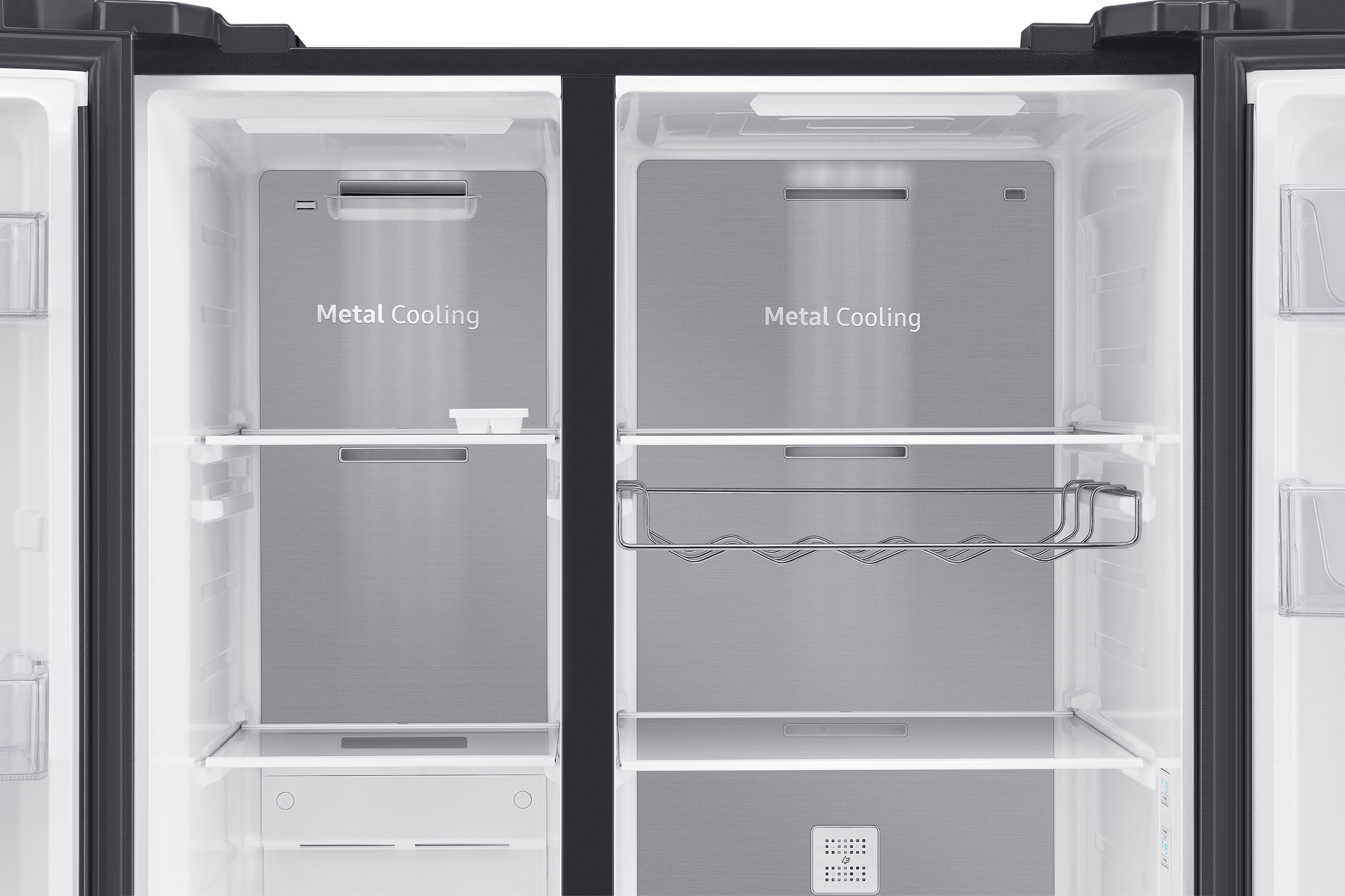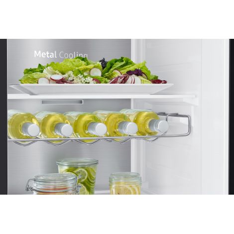 Больше пространства внутри, более бесшовный стиль внешне Технология SpaceMax Храните больше пищи с очень просторным интерьером 617 л. Его уникальная технология SpaceMax дает возможность стенам быть значительно тоньше, поскольку использует минимальное количество высокоэффективной изоляции. Таким образом, он создает больше место для хранения без увеличения внешних размеров или снижения энергоэффективности. Свежие продукты на всех полках Всестороннее охлаждение Убедитесь, что вся еда правильно охлаждена - где бы она не находилась в холодильнике. Система всестороннего охлаждения постоянно проверяет температуру и выдувает холодный воздух. Этот режим охлаждает холодильник равномерно, потому каждый продукт питание более длинное остается