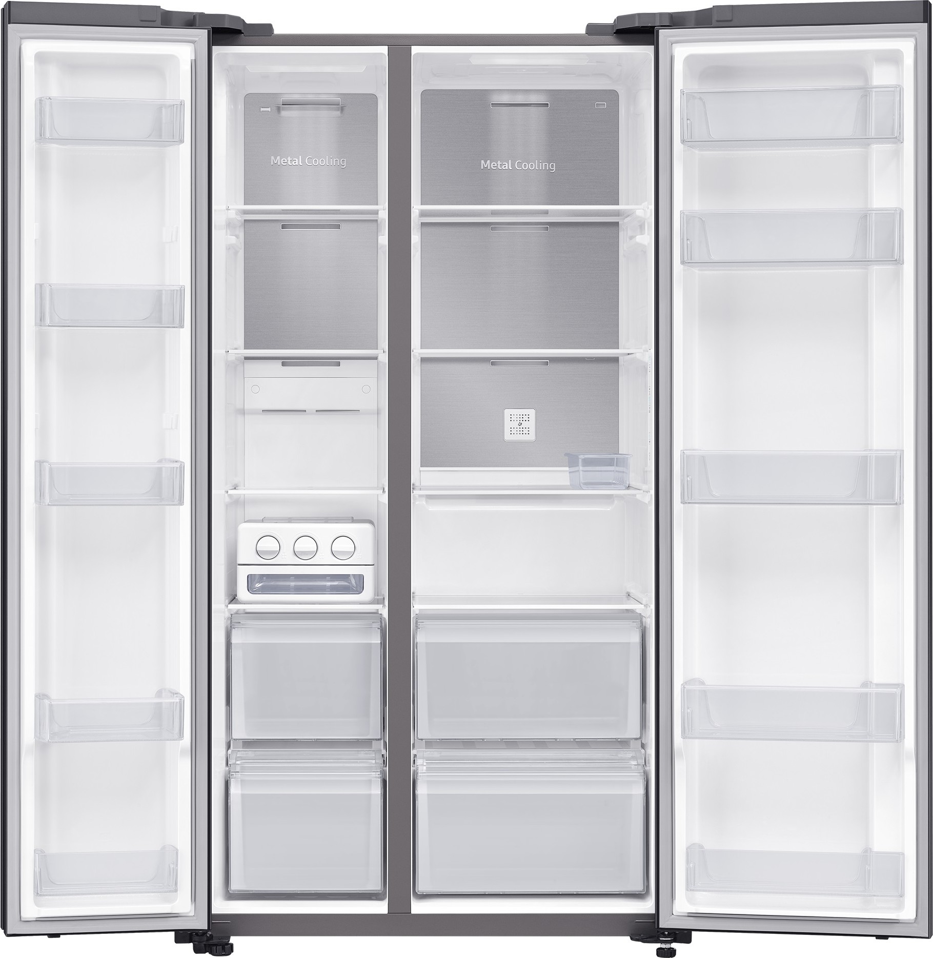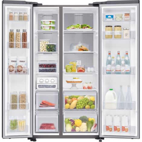 Больше пространства внутри, более бесшовный стиль снаружи технология SpaceMax Храните больше пищи с очень просторным интерьером 617 л. Его уникальная технология SpaceMax позволяет стенам быть значительно тоньше, поскольку использует минимальное количество высокоэффективной изоляции. Таким образом, он создает больше места для хранения без увеличения внешних размеров или снижения энергоэффективности. Свежие продукты на всех полках Всестороннее охлаждение Убедитесь, что вся пища правильно охлаждена - где бы она не находилась в холодильнике. Система всестороннего охлаждения постоянно проверяет температуру и выдувает холодный воздух. Этот режим охлаждает холодильник равномерно, поэтому каждый продукт питания дольше остается свежим. Долговечный и энергоэффективный Цифровой инвертор Цифровой инверторный компрессор Samsung дольше сохраняет вашу пищу с энергосбережением до 50%, а также может работать в течение 21 года непрерывно. Он автоматически регулирует свою скорость в ответ на потребность охлаждения. А его долговечность гарантируется в течение 10 лет. Гармоничный и стильный дизайн Изящный и бесшовный дизайн Придайте своему дому стильный и современный вид. Его гладкий и бесшовный дизайн глубокой глубины прекрасно впишется в габариты вашей существующей техники и шкафы для создания гармоничного интерьера кухни. Он также красивые плоские двери со встроенными ручками, которые не выступают. Ускоренное охлаждение и замораживание Metal Cooling Держите еду свежей, даже если вы часто открываете и закрываете дверь. Канал Metal Cooling в задней стенке помогает поддерживать оптимальную внутреннюю температуру. Он сохраняет холод и предотвращает потерю холодного воздуха, когда дверь открыта. И он быстро восстанавливает любые потери тепла, когда он снова закрывается. Мощное охлаждение или замораживание Мощное охлаждение или замораживание Наслаждайтесь быстрым охлаждением. При нажатии одной кнопки Power Cool продувает сильно холодный воздух в холодильник, чтобы быстро охладить продукты или любимые напитки. А Power Freeze обеспечивает быстрый взрыв холодного воздуха в морозильную камеру. Это прекрасно для замораживания или укрепления замороженных продуктов и приготовления льда. Естественный аромат продуктов без посторонних запахов дезодорирующий фильтр Храните внутреннюю часть холодильника дезодорированное и дольше сохраняйте оригинальный аромат пищи. Встроенный фильтр для дезодорации устраняет сильные запахи, так как воздух постоянно проходит через угольные фильтры. Следовательно, нет необходимости в других решениях по борьбе с запахом. Легко сохраняйте больше овощей и фруктов Коробка Vege Большая емкость Vege Box обеспечивает удобное место для хранения большого количества свежих овощей и фруктов. И потому, что это настолько большое, гораздо проще найти все, потому что они все в одном месте и легко добраться, так что вы можете наслаждаться ими чаще, не занимая ценного кухонного пространства.