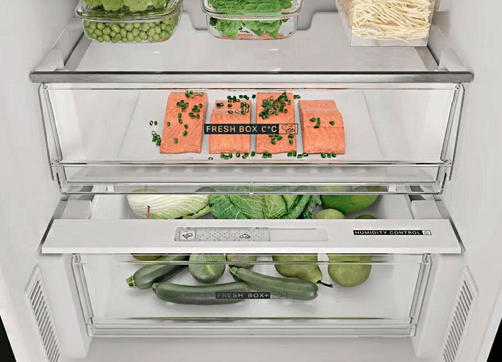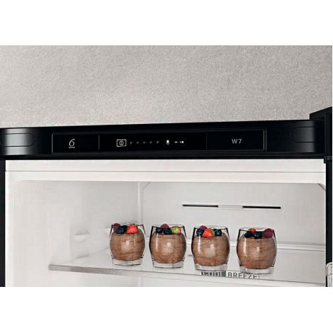Насолоджуйтесь неймовірною свіжістю та якістю продуктів! Холодильник Whirlpool W7X 82I K з нижньою морозильною камерою: з системою охолодження Total NoFrost. З технологією Total NoFrost у холодильнику Whirlpool повітря в морозильній камері автоматично осушується, завдяки чому не потрібно витрачати час на розморожування. Крім того, заморожені продукти не прилипають до стінок, етикетки залишаються розбірливими, а місце для зберігання продуктів - чистим. Датчики 6th Sense виявляє найменші зміни температури і вологості та негайно відновлює їхній рівень одразу після того, як Ви покладете продукти в холодильну камеру і закриєте дверцята. Whirlpool W7X 82I K має клас енергоефективності А++, що забезпечить якісні результати в поєднанні з низьким рівнем енергоспоживання. Користуйтеся перевагами швидкого доступу до продуктів завдяки спеціальній полиці простого доступу на напрямних, вона висувається таким чином, що дає змогу швидко дістати ті продукти, які Ви найчастіше використовуєте. Система охолодження Total No Frost Інтелектуальні датчики, всередині холодильної камери, відстежують температуру і зменшують її коливання, щоб забезпечити оптимальний рівень, необхідний для зберігання продуктів. Технологія Whirlpool Total NoFrost автоматично осушує повітря в морозильній камері, завдяки чому немає необхідності витрачати час на розморожування. Крім того, заморожені продукти не прилипають до стінок, етикетки залишаються розбірливими, а місце для зберігання продуктів завжди чистим. Весь простір, який Вам необхідний Інноваційний дизайн надасть комфортне управління простором і різноманіття ергономічних рішень для зберігання продуктів і напоїв. При цьому у Вас завжди буде можливість перерозподілити простір так, як це потрібно Вам. Зберігає свіжість ніжних страв довше! FreshBox 0 - спеціальний ящик із температурою приблизно 0°C, завдяки чому він стає ідеальним місцем для зберігання м'яса, риби та інших швидкопсувних продуктів. Завдяки підтримці постійного рівня температури, продукти збережуть смак, структуру і корисні властивості, а Ви зможете насолодитися свіжими і здоровими стравами. Швидко заморозити продукти Функція швидкого заморожування встановлює температуру в морозильній камері на 10 градусів нижче від мінімального значення, щоб швидко заморозити продукти та зберегти їхні смакові якості. Внутрішнє LED освітлення Нова надійна та ефективна система світлодіодного освітлення споживає менше енергії. Це також забезпечує кращу видимість всередині холодильника.