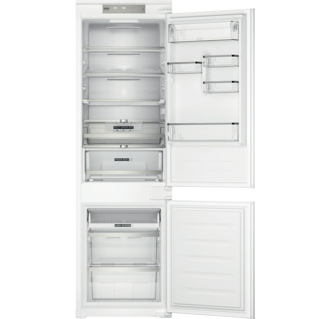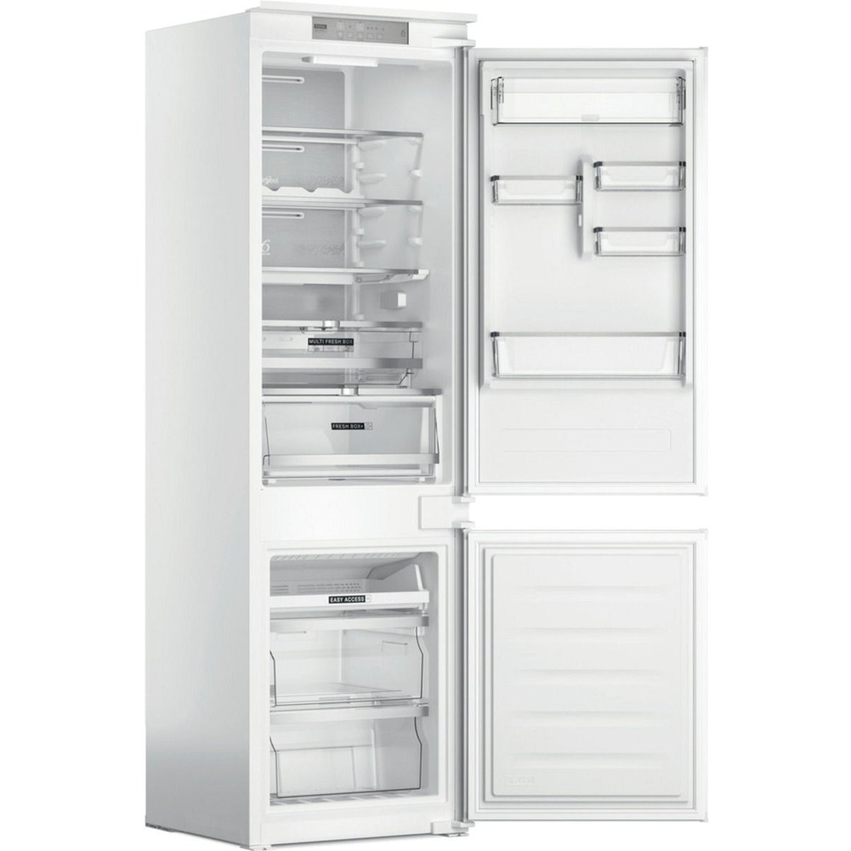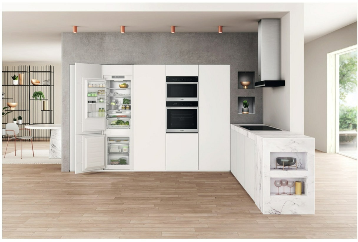 Ефективне охолодження в найтихішому холодильнику Whirlpool WHC18 T573 Комбінований холодильник Whirlpool WHC18 T573 - вишукана вбудована модель, яка стане невід’ємною частиною вашої кухні. Місткий внутрішній об’єм 250 л і рівень шуму всього 32 дБ роблять холодильник практичним і найкращим вибором для вашої кухні. А кілька додаткових функцій Whirlpool WHC18 T573, таких як запатентована технологія 6th Sense, яка допомагає довше зберігати продукти свіжими, а також вентилятор для рівномірного розподілу холодного повітря всередині приладу, підвищують щоденний комфорт при використанні приладу. Технологія сенсорного охолодження 6th sense Total No Frost Завдяки технології 6th Sense у холодильнику Whirlpool ваші продукти довше залишаються свіжими. За допомогою спеціального датчика, Whirlpool WHC18 T573 ефективно оцінює умови зберігання та автоматично регулює температуру всередині. MultiFlow & Total NoFrost Завдяки технології Total No Frost вам більше ніколи не доведеться турбуватися про розморожування вашого холодильника. Унікальна система Whirlpool WHC18 T573 використовує вентиляцію для циркуляції холодного повітря в обох відділеннях, усуваючи накопичення льоду та створюючи оптимальні умови для зберігання ваших продуктів. Крім того, функція Multiflow, що має вентиляційні отвори на кожному рівні, допомагає розподіляти холодне повітря по всьому корпусу для повного охолодження. Універсальне рішення для зручного зберігання продуктів Надзвичайна мобільність із шухлядою Multi Fresh Box, яка дозволяє створити ідеальні умови для різних видів продуктів. Що б ви не зберігали – свіжі овочі та фрукти (3-4°C), молочні продукти (2°C+) або м’ясо та рибу (1-2°C) – вам потрібно лише повернути ручку та встановити відповідні налаштування. Технологія ZenInverter Інверторний компресор ZenInverter розроблений для оптимального збереження продуктів, економії енергії та тихої роботи. Завдякі новій технології, Whirlpool WHC18 T573 згладжує коливання температури, створюючи ідеальні умови для ефективного зберігання. Преміальне освітлення LED Енергозберігаюче світлодіодне освітлення рівномірно розподіляє світло по всьому холодильнику, що дозволяє легко знайти те, що вам потрібно. Тихий, надійний та енергозберігаючий: ідеальний холодильник для вашого дому Холодильник Whirlpool WHC18 T573 може похвалитися енергоефективністю з класом енергоспоживання A+, що забезпечує оптимальну продуктивність і високий рівень економії електроенергії, а також потужним компресором всередині, який працює тихо та ефективно для вашого комфорту. Відчуйте переваги холодильника Whirlpool WHC18 T573 преміум-класу, зменшуючи витрати на електроенергію.