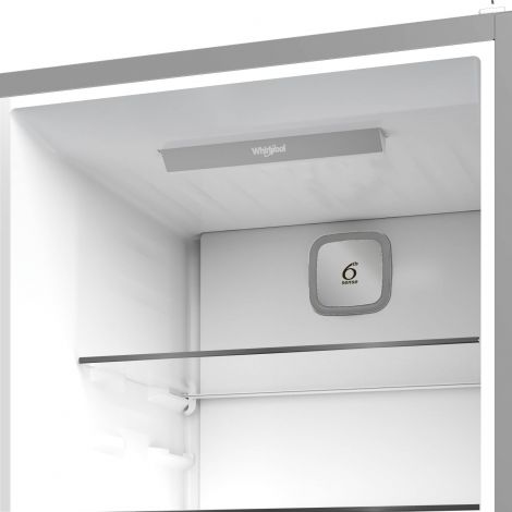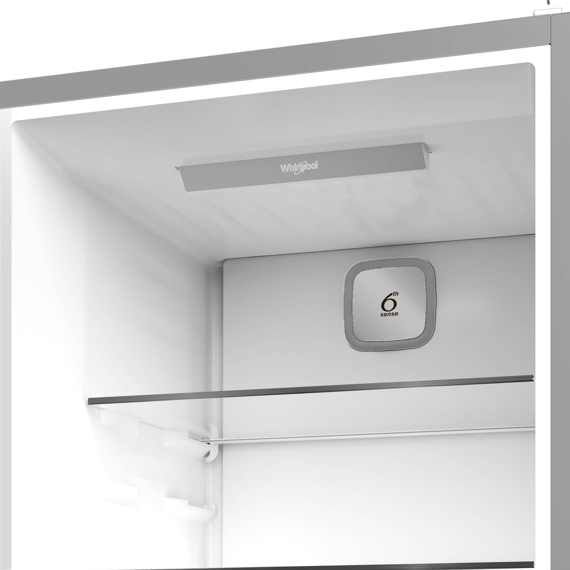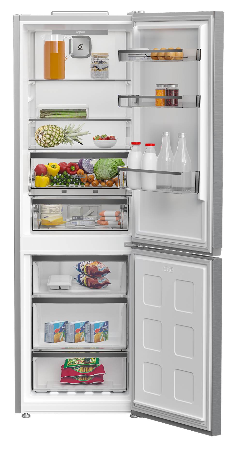 Двокамерний холодильник Whirlpool WHK 26362 XP4U — це сучасний і зручний прилад для щоденного користування, який поєднує продуману функціональність, високу енергоефективність і елегантний сріблястий дизайн. Загальний об’єм становить 316 літрів, з яких 210 літрів припадає на холодильне відділення та 106 літрів — на морозильне. Нижнє розташування морозильної камери забезпечує легкий доступ до продуктів у холодильній частині, якою користуються найчастіше. Модель оснащена інверторним компресором і працює за технологією Dual No Frost, яка повністю виключає утворення інею як у холодильному, так і в морозильному відділенні. Це не тільки спрощує догляд, а й підтримує оптимальний рівень вологості, завдяки чому продукти довше залишаються свіжими. Холодильник належить до класу енергоефективності A++ і споживає лише 248 кВт/год на рік, а рівень шуму не перевищує 35 дБ, що робить його дуже тихим у роботі. Усередині холодильного відділення розміщено 3 скляні полички, 3 дверні кошики, 2 окремі контейнери для овочів та полицю для пляшок. Морозильна камера має 3 місткі секції, її потужність заморожування становить 6 кг на добу, а автономне збереження холоду без електрики — до 11 годин. Прилад обладнано LED-індикацією, прихованими ручками, функціями швидкого охолодження, режимом еко та сигналом відкритих дверей. Завдяки широкому кліматичному класу SN-T холодильник стабільно працює при температурі від +10 до +43 °C.
