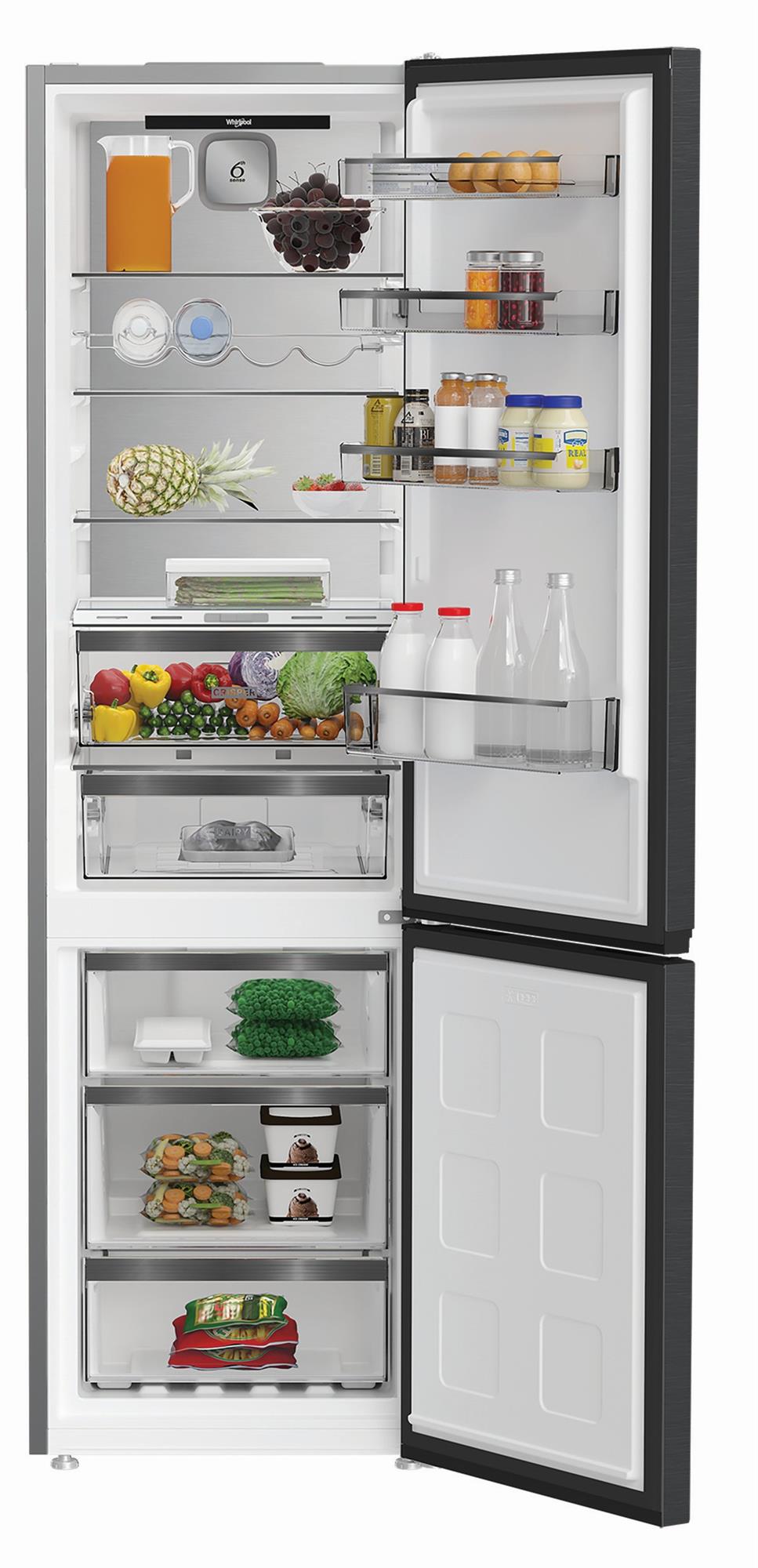Двокамерний холодильник Whirlpool — це продумане та сучасне рішення для дому, у якому поєднуються висока енергоефективність, інноваційні технології та комфорт у щоденному використанні. Загальний об’єм становить 355 літрів, з яких 249 літрів припадає на холодильну камеру, а 106 літрів — на морозильну. Нижнє розташування морозильної камери забезпечує зручний доступ до найчастіше вживаних продуктів. Модель оснащена системою Dual No Frost, яка незалежно охолоджує обидві камери й запобігає утворенню інею, зберігаючи свіжість продуктів без потреби у ручному розморожуванні. Річне споживання електроенергії становить лише 260 кВт·год, що відповідає високому класу ефективності A++. Інверторний компресор забезпечує стабільну роботу, низький рівень шуму (усього 35 дБ) і довгий термін служби. Електромеханічне керування дозволяє точно налаштувати температуру та режими. Серед додаткових функцій — режим «Еко», швидке заморожування, режим «Відпустка», а також звукові сигнали при відкритих дверцятах і підвищенні температури, що допомагає зберегти продукти у безпеці. Внутрішнє оснащення включає 4 міцні скляні полиці, 4 дверні кошики, 2 контейнери для овочів і підвісну полицю для пляшок. Все освітлюється яскравим і енергоощадним LED-підсвічуванням. Морозильна камера поділена на 3 секції, має потужність заморожування до 6 кг на добу та зберігає холод до 11 годин у разі вимкнення електроенергії. Корпус виконаний у сучасному стилі з горизонтальними прихованими ручками, які підкреслюють лаконічний і охайний дизайн. Пристрій стабільно працює у широкому температурному діапазоні — від +10 до +43°C (кліматичний клас SN-T) Whirlpool — це вибір на користь надійності, тиші та передових технологій в одному стильному й функціональному холодильнику.