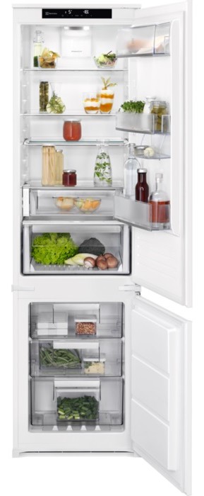 Познакомьтесь с абсолютным рекордсменом по вместимости. Холодильник-морозильник 800 MultiSpace предлагает большую вместимость по сравнению со стандартными моделями и дарит продуманные и гибкие решения для хранения и поддержания свежести: с ним у вас всегда найдется место для продуктов. MultiSpace: абсолютная гибкость хранения Холодильник MultiSpace выше обычного, что дает больше места для хранения ингредиентов. Разнообразные решения хранения для повышения гибкости выбора разработаны с учетом ваших нужд: компонуйте пространство на свой вкусу. TwinTech с No Frost предотвращает высыхание Умная сдвоенная система охлаждения TwinTech No Frost защитит ингредиенты от потери влаги. Независимое охлаждение холодильника и морозильника позволяет превзойти стандартные системы полного удаления наледи. В морозильнике не образуется наледи. В холодильнике поддерживается нужная влажность, что уменьшает убыль массы на 60%. TwinTech No Frost. Десятилетняя гарантия на компрессор Вам понравится абсолютное душевное спокойствие от мысли о десятилетней гарантии на сам компрессор. Гарантия покрывает расходы, которые могли бы возникнуть в ходе ремонтных работ, транспортировки, общего обслуживания, при удалении и замене хладагента. Настройки одним касанием. Электронное двойное сенсорное управление Благодаря электронному двойному сенсорному управлению вам уже никогда не придется угадывать, что происходит внутри вашего холодильника. Вы сможете одним касанием управлять разнообразными функциями и точно регулировать настройки как холодильника, так и морозильника.