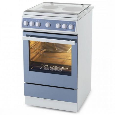 Варочная поверхность оснащена четырьмя электрическими конфорками, одна из которых - конфорка усиленного нагрева. Для хранения посуды и экономии свободного пространства на кухне предусмотрен специальный ящик, расположенный в нижней части корпуса. Увеличенный объем духовки позволит готовить большие блюда из птицы или обеды на несколько персон одновременно. Духовой шкаф обладает встроенным механическим таймером, который избавит от необходимости контроля процесса приготовления.