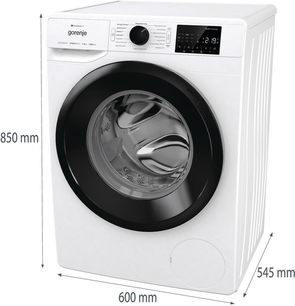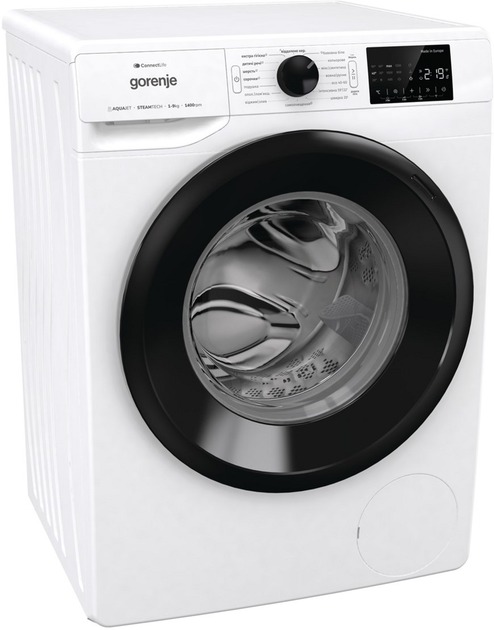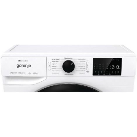 EnergyClass A -10% Насолоджуйтесь чудовою економією коштів та екологічними перевагами завдяки значному зниженню енергоспоживання на 10 %, що перевершує галузеві стандарти для класу А, що робить його більш розумним та стійким вибором для екологічно чистих рішень. ConnectLife Зробіть своє життя простіше, керуючи пральною машиною через програму на мобільному телефоні. Віддалене керування, сповіщення та підтримка – це функції, які допоможуть вам керувати роботою приладу набагато швидше та зручніше, де б ви не знаходилися. Aqua JetWash Чиста білизна з надійною системою Aqua JetWash, яка ефективно відмиває забруднення. Вода подається в барабан під високим тиском, тому миючий засіб розчиняється швидше, а плями видаляються ефективніше. Функція працює під час фази прання. ExtraHygiene program Програма «Екстрагігієна», протестована та сертифікована компанією Intertek, за допомогою пари та високої температури видаляє до 99.9% бактерій та грибків, практично дезінфікуючи одяг. Одяг буде ідеально випраний, і машина довше залишатиметься чистою, без мікробів і запаху. SteamTech Забудьте про кондиціонер! Додаткова обробка парою наприкінці програми значно зменшує кількість складок, запах та вбиває бактерії. Ваш одяг буде абсолютно чистим, м’яким і практично без складок. Inverter PowerDrive motor Тихий, але потужний двигун забезпечує довгий термін служби пральної машини і економить енергію при кожному пранні. AddClothes За допомогою StopAddGo можна призупинити програму на початковому етапі, щоб додати або витягти білизну. Speed ??20’ Достатньо всього 20 хвилин, щоб освіжити нові футболки або слабко забруднену білизну. Тому ваш улюблений одяг завжди буде напоготові. ShirtsSteam Ця програма розроблена спеціально для прання сорочок, щоб вони були не тільки бездоганно чисті, а й менш м’яті. Тому тепер ви будете витрачати менше часу на прасування. DrumClean Прання з пральним порошком за низьких температур створює сприятливі умови для розвитку бактерій, через що чиста білизна може мати неприємний запах. Програма очищення барабана DrumClean усуває бактерії в баку машини, дбаючи про ідеальну чистоту та свіжість білизни. FastWashing function Завжди поспішайте і часу постійно не вистачає? Саме для таких ситуацій у пральних машинах Gorenje передбачена функція FastWashing. Вона дозволяє скорочувати час виконання будь-яких програм, у тому числі попереднього прання та додавання води. Pillow З цією програмою ви можете легко прати пуховики, ковдри та подушки вдома, заощаджуючи час та гроші. WaveActive drum Нова хвильова перфорація барабана у поєднанні з особливою хвилеподібною формою 3D-ребер пом’якшує волокна. Це забезпечує більш дбайливий догляд за одягом, дозволяє досягти бездоганної якості прання та звести до мінімуму утворення складок. Simple interface Проста та зручна панель управління з центральним перемикачем програм дозволяє розпочати прання, виконавши три прості дії. Увімкніть машину, виберіть програму та натисніть кнопку СТАРТ! Немає необхідності вибирати додаткові функції та налаштування. Параметри можна вільно міняти на великій сенсорній панелі керування, тому ви можете бути впевнені, що білизна буде випрана саме так, як вам потрібно. SleekDoor Великі дверцята, виготовлені з цільного пластику без гвинтів, мають міцну конструкцію і не скриплять під час руху. Дверцята відкриваються на повних 180 градусів, тому завантажувати та виймати білизну дуже зручно. 