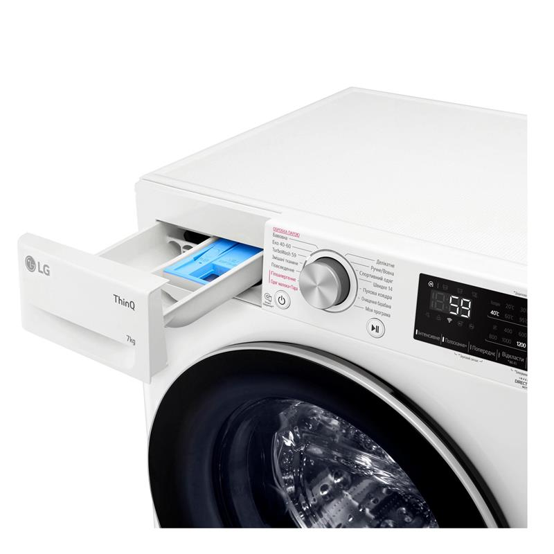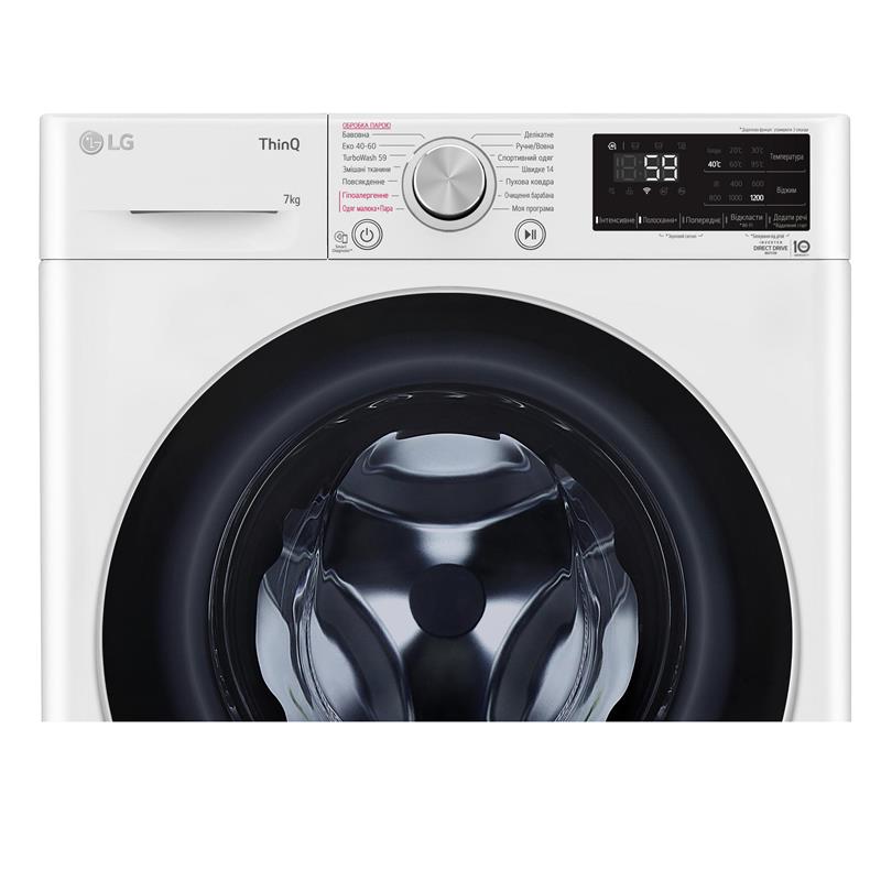 Інтелектуальна система визначення властивостей тканини. У пам’яті пральних машин LG AI DD попередньо завантажено базу даних із 20 000 поєднань тканини. Аналіз даних дає змогу підібрати окремий алгоритм прання для кожного типу білизни. У результаті Ви отримуєте високу якість прання та до 18% менше пошкоджень тканини. Як працює AI DD? Інтелектуальна система AI DD здатна визначити не тільки вагу білизни, а й такі властивості тканини, як щільність і м’якість. Менше часу, більше життя. З технологією TurboWash можна ефективно випрати білизну всього за 59 хвилин. Витрачайте менше часу на прання і більше - на свої потреби! Високий показник. Виняткова енергоефективність класу A+++-30%. Турбота про здоров’я. Технологія LG Steam видаляє до 99.9% побутових алергенів, піклуючись про здоров’я вашої родини. Видалення до 99,9% алергенів. Обробка парою знищує до 99,9% побутових алергенів. Підвищена міцність і гігієнічність. Елегантна накладка на дверцятах із загартованого скла стійкіша до подряпин, ударів і високих температур. Для підвищення довговічності, ребра барабана виготовлені з неіржавкої сталі, що має антибактеріальні властивості. Зручніше й елегантніше. Чіткіший дисплей і збільшений розмір перемикача програм із металевим покриттям для кращої ергономіки. Просте керування за допомогою голосу. Керуйте Вашою пральною машиною звідки і коли Вам це необхідно. Дізнайтеся, як зараз виконується програма прання або скільки часу залишилося до завершення роботи тільки за допомогою голосу. Функція "Додати речі". Якщо Ви забули покласти речі до пральної машини до початку прання, просто натисніть кнопку "Додати речі" і покладіть те, що потрібно: маленькі дитячі шкарпетки або навіть велику зимову куртку. Ви зможете відчинити дверцята і додати забуту річ без необхідності перезапускати весь цикл прання. Контроль перепаду напруги. Компанія LG піклується про комфорт і безпеку своїх споживачів. Спеціально розроблена система захисту від перепадів напруги дає змогу всій техніці LG працювати без перебоїв. З нею можна не турбуватися, що техніка згорить від чергового вимкнення світла або очевидних перепадів напруги в діапазоні від 174 до 400 Вольт. 10 років додаткових зобов’язань перед нашими споживачами. Компанія LG створює наднадійну техніку і окрім повної гарантії на продукт терміном на 12 місяців зобов’язується безкоштовно надавати певний перелік деталей для подальшої заміни. Для пральних машин LG ці зобов’язання поширюються на окремі деталі двигуна інвертора з прямим приводом із системою Inverter Direct Drive.