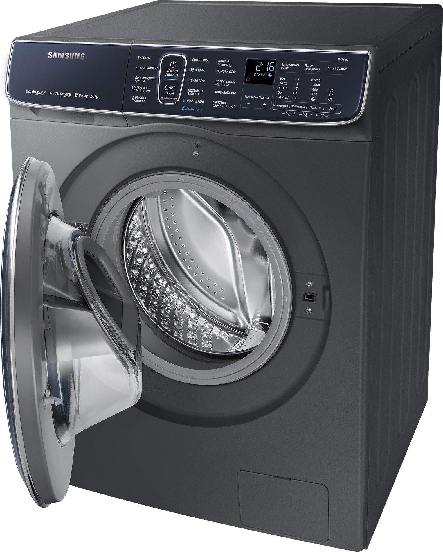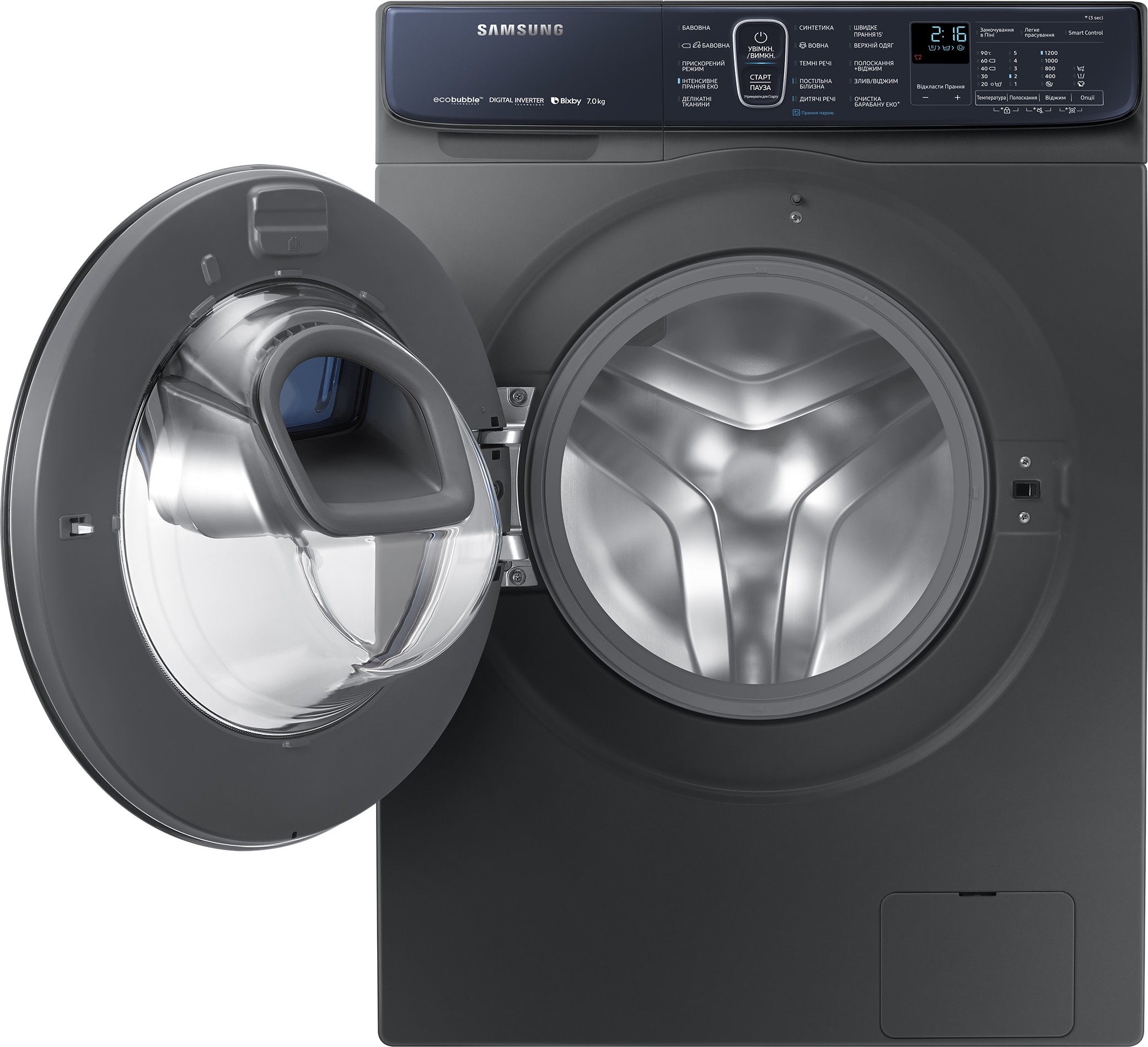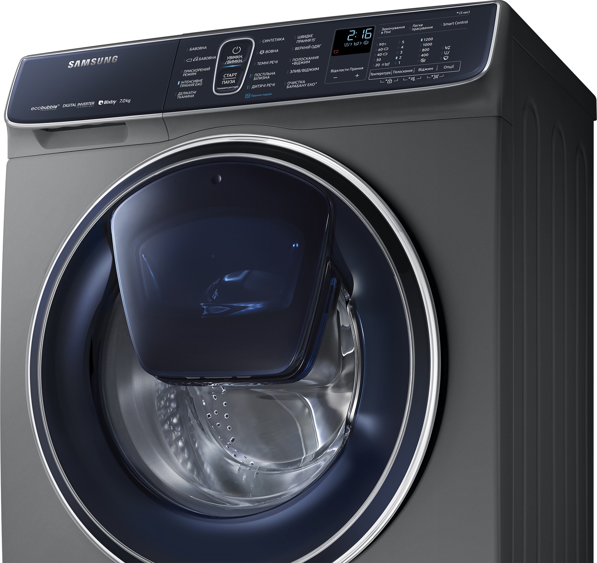 Добавляйте вещи в любое время цикла Функция Add Wash Не расстраивайтесь, если уже запустив стирку, вы вдруг найдете потерянную носок или поймете, что надо постирать еще рубашку. Дверцы Add Wash позволят вам просто и быстро добавить вещи или моющее средство после начала стирки. Вы также можете добавить в машину выстиранное вручную белье, которое нужно прополоскать или высушить. Стирка с системой искусственного интеллекта (ИИ) Bixby Вы можете более эффективно использовать свою стиральную машину. Система с использованием искусственного интеллекта (ИИ) Bixby повышает эффективность работы, опираясь на данные о взаимодействии с пользователем. Функция «Рецепты стирки» посоветует лучшие циклы стирки. «Планировщик стирки» оптимизирует график стирки. «Мастер HomeCare» позволяет проводить устранение неисправностей в отдаленный способ. Сила пузырей Eco Bubble Экономьте деньги и защищайте свою одежду. Технология Eco Bubble обеспечивает эффективную и бережную стирку даже при низких температурах. Средство для стирки превращается в пузырьки, которые быстро проникают в ткань и легко выводят загрязнения, защищая ткань, сохраняя ее текстуру и экономя энергию. Быстрая и эффективная стирка Суперскорость Сократите время стирки и получите более чистую одежду. Просто выберите функцию «Суперскорость», чтобы постирать полностью загруженную машину всего за 49 минут. Технология Eco Bubble обеспечивает мощное очищение, а время полоскания сокращается благодаря сочетанию быстрого распыления с дизайном барабана Swirl+ и ускорением скорости вращения. Быстрое выявление протечек AquaProtect Защитите свой пол и дом от случайного повреждения с системой выявления протечек AquaProtect. Она размещается под машиной и обнаруживает небольшие следы воды. В случае появления протекания система немедленно прекращает цикл стирки, сливает воду и выдает сообщение об ошибке. Таким образом, она сохраняет вас в безопасности и позволяет избежать потенциальных убытков. Гигиенично чисто Очистка барабана ЭКО+ Поддерживайте чистоту внутри стиральной машины. Режим очистки барабана ЭКО удаляет из барабана грязь и бактерии, вызывающие запах. Вам не нужен агрессивное или дорогое моющее средство, поскольку в этом режиме используется комбинация замачивания, полоскания и высокоскоростного вращения. А еще машина будет сообщать вам, когда необходимо произвести очистку. Очистка остатков Лоток StayClean Drawer Прекратите тратить моющее средство и избегайте надоедливую чистку выдвижного лотка. Лоток StayClean Drawer обеспечивает смывание большей части стирального средства специально разработанной системой промывки водой. Таким образом, в лотке остается меньше неиспользованного моющего средства, и он остается чистым и гигиеничным. Гигиеническая очистка Очистка паром Обеспечьте свою одежду действительно глубокой и гигиеническим очисткой с помощью пара. Цикл «Пар» улучшает качество стирки без предварительной обработки вещей. Пар выпускается со дна барабана, тщательно насыщая все вещи. Это устраняет въевшуюся грязь и 99,9% бактерий и аллергенов. Меньший уровень шума и энергопотребления Цифровой инвертор Наслаждайтесь повышенной энергоэффективностью, пониженным уровнем шума и длительной службы. В технологии цифрового инвертора используются сильные магниты для увеличения мощности, но такое устройство работает тише и п