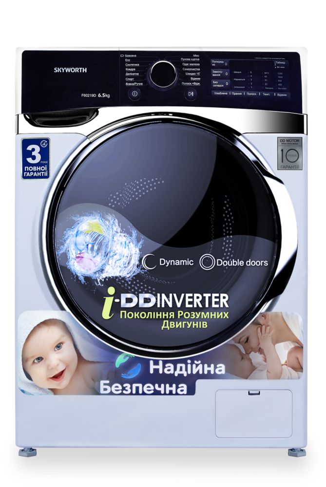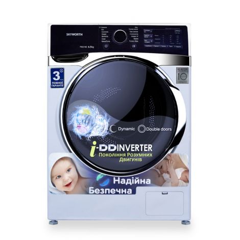 Увеличенное загрузки 6,5 кг Глубина 44 см Позволит постирать крупногабаритные вещи такие, как шторы, одеяла, подушки или одновременно большое количество вещей. Многофункциональный, большой сенсорный дисплей. Позволит быстро и легко управлять дополнительными функциями стиральной машины. Корректировать температуру, количество дополнительных полосканий (до 5-ти), время стирки. Большой выбор программ обеспечит необходимый уход за любыми вещами и любым типом тканей Специальные программы «Спорт», «Пуховая куртка», «Одежда малыша» и быстрая - «Быстро 15"» Наилучшие результаты стирки за наименьшее время. Современный двигатель стиральных машин Skyworth в базовой серии обеспечит тихую и надежную работу с высоким показателем энергоэффективности. Благодаря специальной рециркуляционной подачи воды достигается высокий класс энергоэффективности А+++ -10% и наибольшую степень смачивания белья для отличных показателей результатов стирки с наибольшей экономией. Автоматическое определение количества сухого белья благодаря датчику нагрузки на двигатель инверторной технологии (от 0,5 кг) Оптимальное определение количества воды и электроэнергии в зависимости от загрузки с сверхточным электронным датчиком уровня воды Определение типа загруженной ткани, автоматический подбор алгоритма стирки Автоматическое определение времени стирки