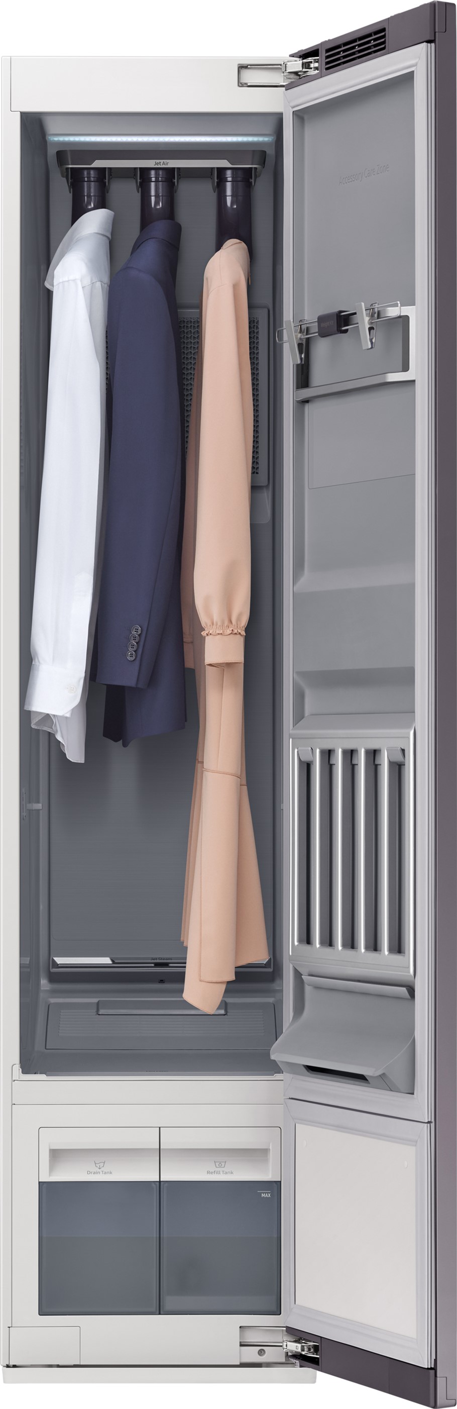 Устранение бактерий, вирусов и аллергенов. Технология JetSteam Технология Jet Steam обеспечивает гигиеническую очистку и освежение вашей одежды, благодаря системе мощных потоков высокотемператуного пара Jet Air, который проникает глубоко внутрь тканей и устраняет 99.9% вирусов и бактерий, 100% пылевых клещей, 99% запахов и 99% прочих вредных веществ*. * Устраняет: 1) 99,9% 4 видов вирусов (аденовирус, грипп, коронавирус и вирус герпеса) по результатам тестирования в лаборатории Корейского университета с использованием режима Гигиена. 2) 99,9% 2 типов бактерий (кишечная палочка и стафилококк), 99% запахов, переносящихся по воздуху (Изо-валериновая кислота: пот; 4-этинилпиридин: табак; Валеральдегид: продукты питания, например, мясо на гриле; и Тетрахлорэтилен: химчистка) на основе тестирования, проведенного Intertek с использованием режима Освежение. 4) 99% вредных веществ (перхлорэтилен) по результатам тестирования Intertek с использованием режима Освежение. Индивидуальные результаты могут отличаться в зависимости от фактической ситуации использования. * Убивает : 1) 100% пылевых клещей, по результатам тестирования, проведенного Intertek / BAF сертификацией с использованием режима Гигиена. Устранение запахов и восстановление свежести одежды Дезодорирующий фильтр Паровой шкаф AirDresser оснащен дезодорирующим фильтром для устранения запахов. Фильтр улавливает и удаляет 99% неприятных запахов, включая запахи от пота, табака, жареного мяса и химчистки*, и предотвращает их накопление на одежде. *На основании тестирования Intertek с использованием обычного режима: изо-валериановая кислота: пот, 4-этенилпиридин: табак, валеральдегид: жареное мясо, и тетрахлорэтилен: химическая чистка. Проверено на изо-валериановую кислоту и 4-этенилпиридин на основе стандарта KS K0891. Индивидуальные результаты могут различаться в зависимости от фактической ситуации использования. Деликатная сушка при низкой температуре Технология сушки HeatPump Технология HeatPump бережно и аккуратно высушит вашу одежду. Она предотвращает усадку и повреждения одежды, используя низкую температуру сушки благодаря слаженной работе двух технологий – потоков воздуха JetAir сверху и теплового насоса HeatPump снизу. Вместе они улучшают циркуляцию воздуха внутри шкафа и равномерно высушивают вашу одежду. Меньше складок. Меньше глажки. Технология Wrinkle Care Опрятный внешний вид без глажения! Технология Wrinkle Care использует сочетание пара и воздуха, уменьшая и разглаживая складки на вашей одежде так, что можно одевать ее, не затрачивая время на глажение. Технология устраняет до 100% складок на шерстяной одежде и до 80% складок на одежде из вискозы*. *На основании независимого тестирования Intertek с использованием нормального режима в соответствии со стандартами KS K 0891 и ISO 9867. После использования AirDresser эффективность разглаживания складок на одежде из шерстяных тканей составила 100%, а на вискозных – 80%. Быстрое и бесшумное удаление пыли с одежды Система Jet Air + Технология Air Hanger Благодаря системе мощных воздушных потоков Jet Air и специальным воздушным вешалкам Air Hangers одежда полностью продувается изнутри наружу и в двух направлениях – вверх и вниз. Такая система эффетивно устраняет глубоко въевшуюся пыль из тканей практически бесшумно и без вибрации*! *На основании внутреннего тестирования уровень шума составляет 42,8 дБ в обычном режиме и 37,8 дБ в бес