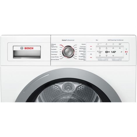 Эффективно высушить до 9 кг белья вам поможет сушильная машина Bosch WTY87781OE. Модель изготовлена с использованием последних технологий и материалов, чтобы вы почувствовали профессиональный уровень работы в домашних условиях. Устройство бережно относится ко всем видам тканей, даже самым деликатным, так как уникальный барабан изготовлен по технологии SensitiveDrying. Сушильная машина Bosch WTY87781OE способна заменить вам химчистку, так как вы сможете самостоятельно стирать и сушить пуховики, подушки и одеяла. Широкий люк для загрузки белья поможет во время работы с крупногабаритными вещами. Панель оснащена поворотным регулятором и сенсорными клавишами, чтобы вы могли осуществить управление без лишних затруднений. Большим преимуществом модели является использование самоочищающегося конденсатора – SelfCleaning Condenser.
