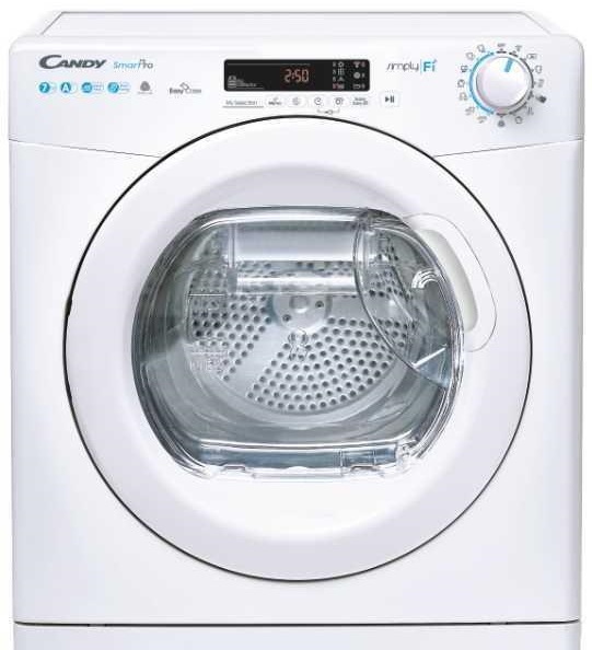 Интеллектуальная сушилка для белья Candy CSO4 H7A2DE-S имеет Wi-Fi и Bluetooth-соединение для управления сушилкой с вашего мобильного телефона. Помимо удаленного управления, оптимизации питания и уведомлений, вы также можете загрузить новые функции и циклы.
