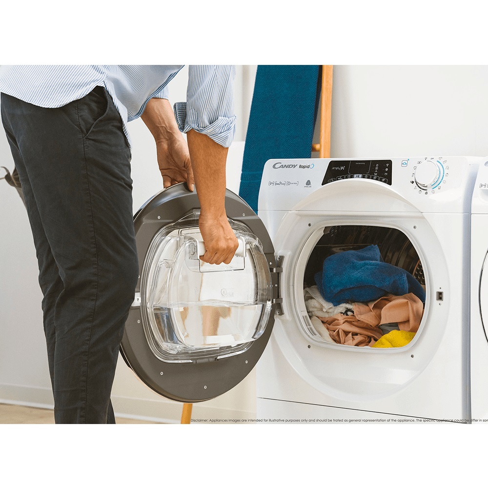 RAPIDO Candy RapidO - це швидка та зручна сушарка, яку створили, щоб нарешті зробити ваші щоденні прання простими та раціональними. Вона має найбільш повний набір із 7 швидких режимів, тривалістю менше 90 хвилин кожен. ТЕПЛОВИЙ НАСОС Технології Candy дозволяють одночасно користуватися сушаркою та пральною машиною чи іншою побутовою технікою, не ризикуючи перевантажити електромережу. Отже, ви не обмежені в тому, скільки часу та електрики можете заощадити вдома. WOOLMARK 100% захисту, 100% догляду. Не хвилюйтеся про ризик псування чи деформації ваших вовняних речей: ваша сушильна машина Candy знає як поводитися з вовняними та делікатними тканинами якнайкраще. Завдяки спеціальним рухам барабана і точним температурним контролем, сушарка знає як висушити шерсть та делікатні тканини без жодного ризику розпушування та псування. Найкращий захист гарантовано. Схвалено компанією WOOLMARK. Досить витрачати час Завдяки функції "Відкладений запуск" (Start Delay), цикл сушіння можна розпочати із затримкою до 24 годин: відкладіть його на ніч, щоб заощадити на електриці, або запрограмуйте сушильну машину, як вам зручно. ФУНКЦІЯ SNAP&DRY З функцією Snap&Dry догляд за білизною стає ще інноваційнішим! Наприкінці прання просто сфотографуйте свій мокрий одяг і дізнайтеся, яка програма сушіння краще та швидше. Так ви зможете заощадити час і гроші. Simply-Fi Пристрої з підключенням до WIFI пропонують можливість віддаленого керування через програму Simply-Fi з доступом до великої кількості корисного контенту, такої як додаткові функції, поради та рекомендації щодо обслуговування та технічної підтримки. ДОДАТКОВА ПАМ’ЯТЬ Тепер не доведеться довго згадувати, який цикл сподобався минулого разу: його можна зберегти завдяки функції "Додати до вибраного" (NEW FAVOURITE). Під час наступного сушіння сушарка Сandy відразу завантажить потрібні параметри циклу. ЦИКЛИ СУШКИ НА БУДЬ-ЯКИЙ ВИПАДОК З Candy ви матимете у своєму розпорядженні повний арсенал швидких циклів сушіння тривалістю від 30 до 90 хвилин на будь-який випадок. Ці сушарки гнучкі у використанні, швидко сушать і надійно працюють, а отже, стануть найкращим вибором, якщо треба заощадити час та гроші. СКАЖИТЬ «ПРОЩАВАЙ» ДИСКОМФОРТУ У СПИНІ! Скажіть «прощавай!» дискомфорту у спині під час завантаження білизни. Новий отвір дверей від Сandy на 3,5 см вищий, ніж у інших приладів, гарантує мінімум зусиль під час завантаження або розвантаження сушильної машини. Суперлегке прасування ВДВІЧІ МЕНШЕ СКЛАДОК, ВДВІЧІ ШВИДШЕ прасування. Ваша нова сушильна машина Candy зменшує утворення складок та катишків завдяки спеціальним поперемінним рухам та функції запобігання складкам, до та після циклу сушіння. Інтелектуальний датчик забезпечує ідеальний рівень вологості для вдвічі швидшого прасування. ТЕХНОЛОГІЯ EASY CASE Вибираючи сушильні машини Candy, користувач, перш за все, піклується про високу продуктивність та енергозбереження, і вже після покупки виявляється, що й інші функції мають велике значення. Для вирішення повсякденних проблем Candy винайшла революційний резервуар для збирання конденсату Easy Case! Easy Case - це унікальне рішення для збирання конденсату, що утворюється в процесі сушіння, вбудовану у двері конструкцію. Ергономічна ручка та продумана форма резервуара дозволяє швидко та зручно вийняти його із сушильної машини. Крім того, ви гарантовано зможете заощадити спожи