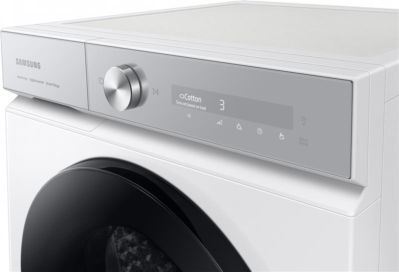 Клас енергоефективності A+++ Енергоефективність класу A+++ Заощаджуйте гроші та бережіть довкілля, споживаючи менше електроенергії*. Тепловий насос забезпечує енергоефективний, економічний та дбайливий спосіб сушіння вашого одягу. Вона має клас енергоефективності A+++, оскільки в ній використовується «холодоагент» замість електрики для нагрівання повітря і рециркуляція теплого повітря, щоб уникнути зайвих витрат енергії. *Протестовано відповідно до стандарту IEC 61121:2013/завантаження 8 кг білизни для прання/програма Cotton Cupboard з використанням Теплового насоса (DV80F5E4HGW) порівнюючи з програмою без Теплового насоса (DV80H4100CW). Індивідуальні результати можуть відрізнятися. Інтелектуальні датчики Сушіння зі штучним інтелектом Насолоджуйтесь швидшим і точнішим* сушінням, яке дбайливо доглядає одяг і знижує витрату енергії на 10%**. Багатодатчикове Сушіння зі штучним інтелектом в режимі реального часу визначає ступінь вологості одягу та інтелектуально створює оптимальну кількість тепла відповідно до ваги та вмісту вологи кожного завантаження. *На основі алгоритму, створеного штучним інтелектом. Фактичні результати можуть відрізнятися залежно від індивідуального використання. **На основі внутрішнього тестування моделі DV9400B (змішане завантаження 2 кг) з використанням Сушіння зі штучним інтелектом порівнюючи зі стандартною моделлю Samsung DV5000T. Результат: Енергоспоживання зменшується на 10%. Результати можуть відрізнятися залежно від фактичних умов використання. Ефективна турбота без зайвих зусиль Технологія QuickDrive Витрачайте менше часу на сушіння й ефективно доглядайте за одягом. При активації QuickDrive час сушіння скорочується до 35%* і знижується витрата енергії. На відміну від традиційних сушильних машин, технологія інверторного компресора автоматично регулює швидкість роботи відповідно до внутрішньої температури та потреб у догляді.