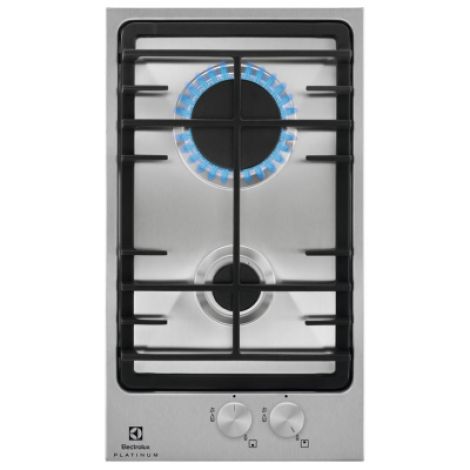 Тип поверхні - газова, нержавіюча сталь, кількість конфорок - 2, передня: потужністю 1000 вт, діаметром 56 мм, задня: потужністю 3000 вт, діаметром 84 мм, Управління - механічне, Газ-контроль - так, Електропідпал - так, Матеріал решіток - чавун, 220 В, Розміри ніші для вбудовування - 270х490 см, 5.5 кг, білий