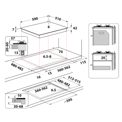 | Розміри ніші для вбудовування | 560-562 х 480-482 см |