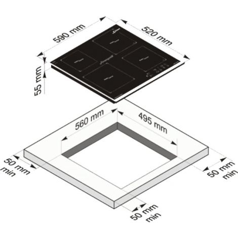 | Диаметр и мощность конфорок | Передняя правая 2.6 кВт, Передняя левая 1.5 кВт, Задняя левая 2.6 кВт, Задняя правая 1.5 кВт |
