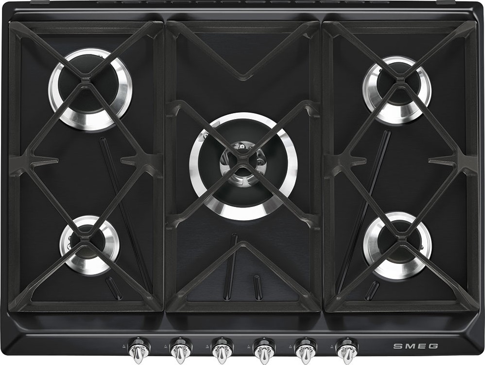 ЭСТЕТИКА и УПРАВЛЕНИЕ Основание черное Чугунные решетки Поворотные переключатели Victoria, эффект нержавеющей стали Крышки горелок эмалированные