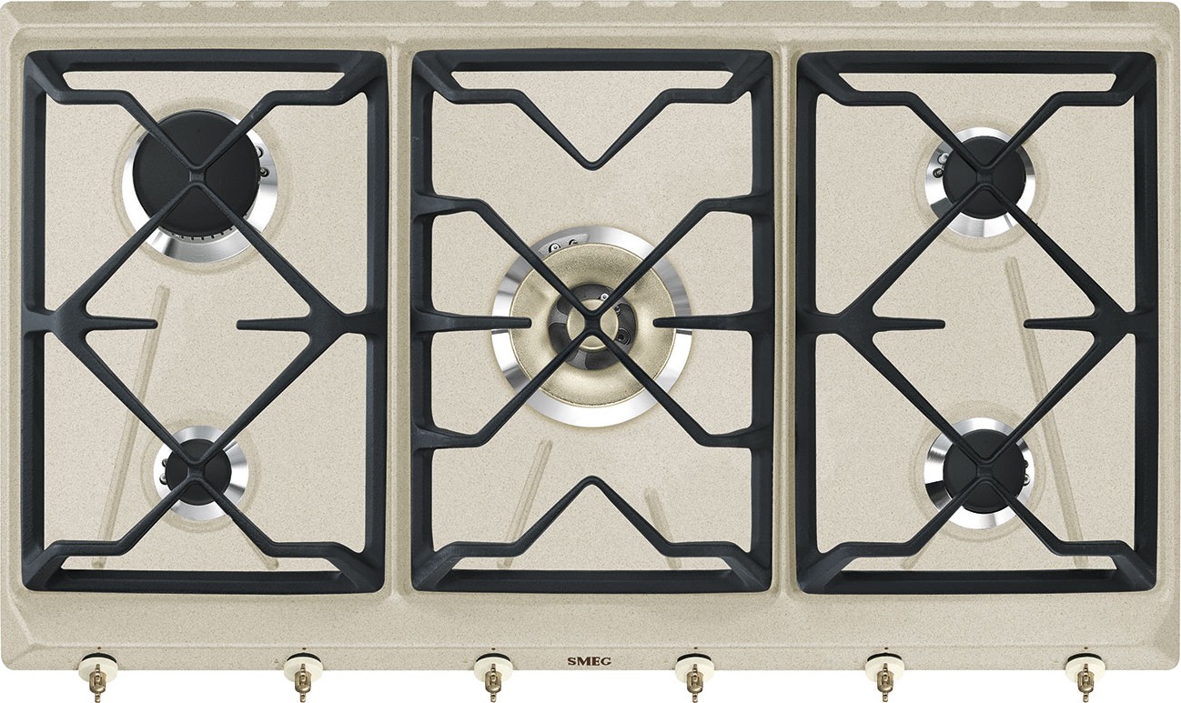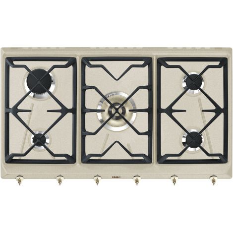 Газовая варочная панель, 90 см, цвет овес, фурнитура латунная.