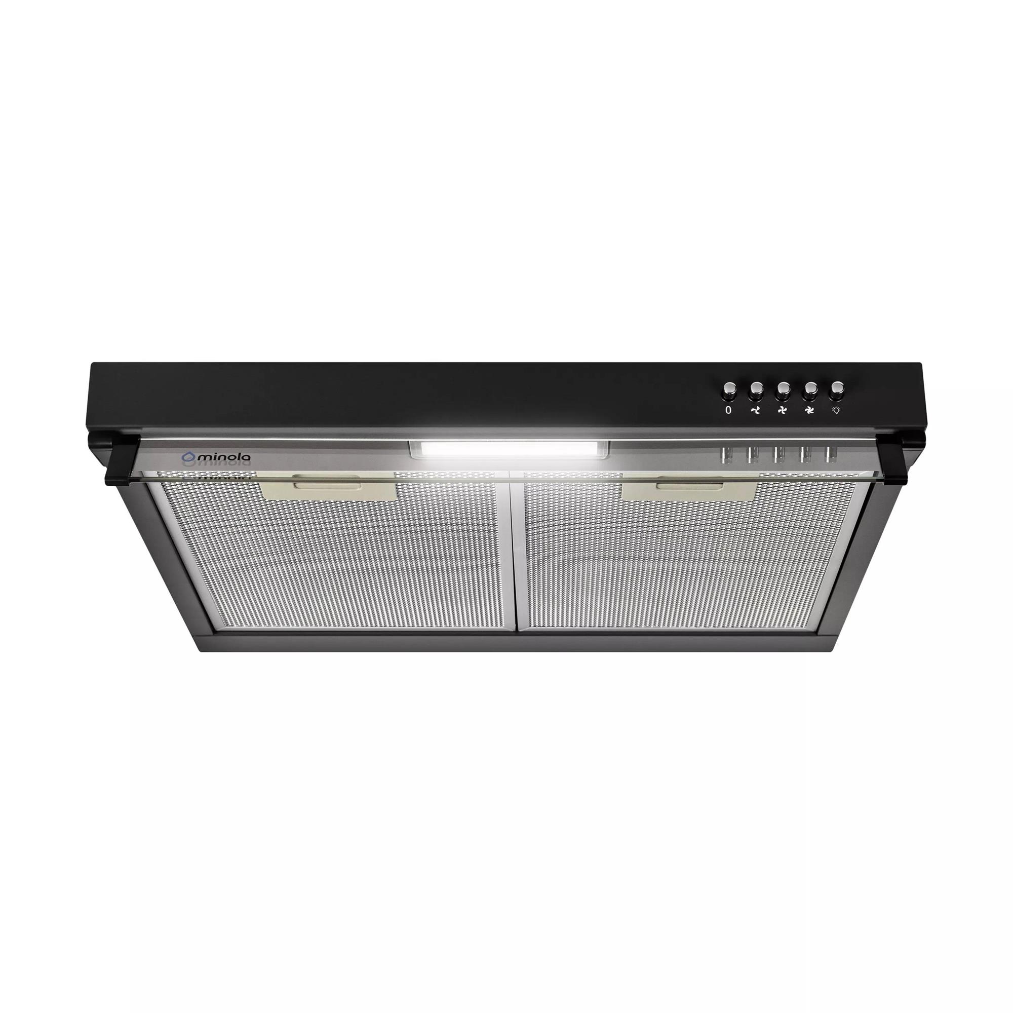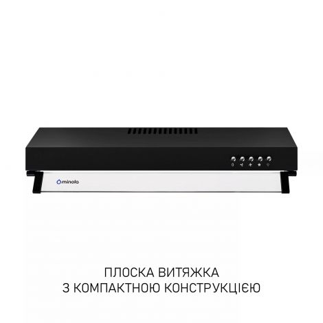 Minola HPL 622 BL — стильна плоска витяжка в чорному кольорі з елегантним скляним козирком. З продуктивністю 450м3/год вона швидко очищує повітря навіть на великих кухнях. LED-підсвітка над плитою економна і комфортна для приготування в темну пору доби. Надійне кнопкове управління дозволяє легко перемикатися між режимами без зайвого клопоту.