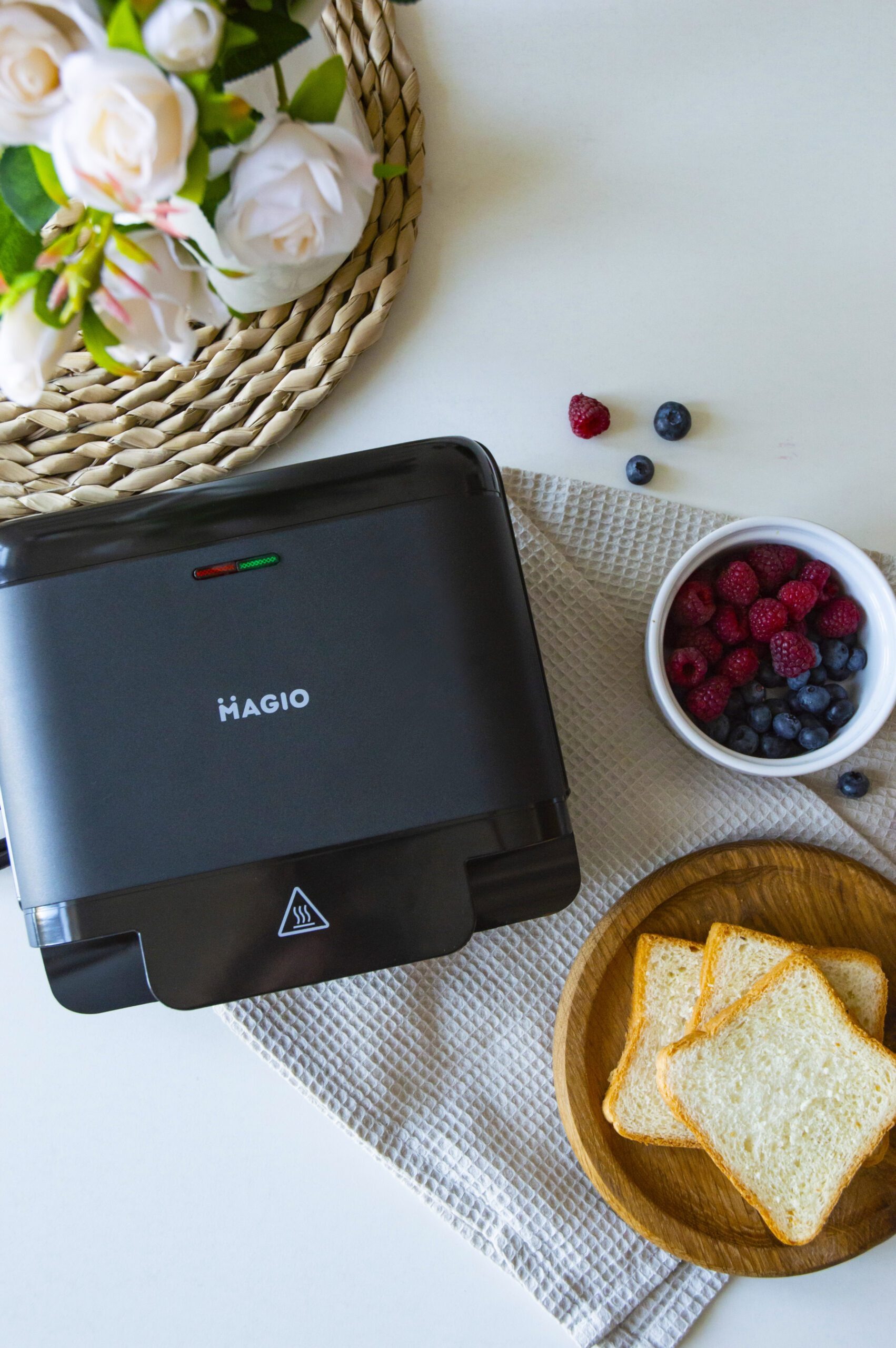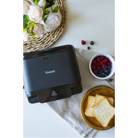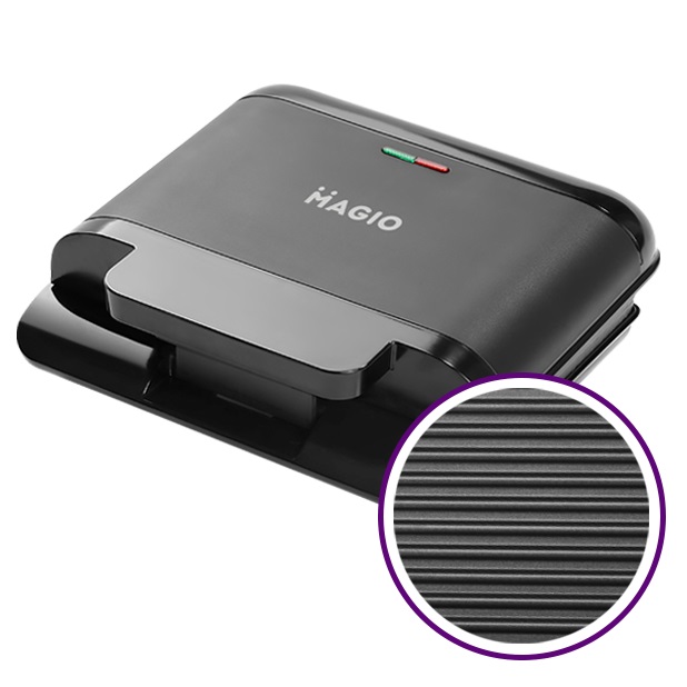 Корпус виготовлений із висококласного термостійкого пластику. Нагрівальний елемент потужністю 750 Вт забезпечить швидке і рівномірне нагрівання двох робочих поверхонь з керамічним покриттям. Бутербродниці Magio дуже зручні у користуванні, сендвічі не пригорають і легко витягуються. Завдяки компактним розмірам та фіксатору бутербродницю зручно зберігати.