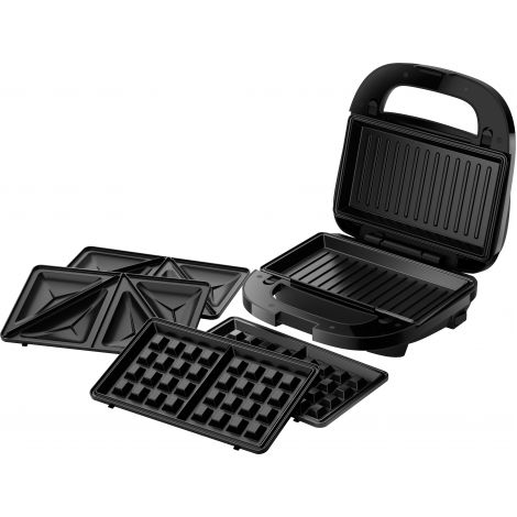 Особливості: Насолоджуйтеся сендвічами, приготованими за Вашим смаком: апетитними, з розплавленою начинкою та ідеально золотисто-коричневою скоринкою з усіх боків. Завдяки швидкому нагріванню мультимейкера потужністю 750 Вт можна легко підсмажити страви до хрусткої золотистої скоринки. Пластини Cut and Seal не дозволяють начинці витікати. Не потрібно вимикати мультимейкер з розетки, щоб увімкнути або вимкнути його. Змінні пластини дозволяють готувати всі Ваші улюблені страви – від довгих хрустких паніні до сендвічів із начинкою і вафель! Більше жодного прилипання та відмивання. Просто зніміть пластини та легко очистіть їх завдяки довговічному антипригарному покриттю. Мультимейкер можна поставити вертикально для зручного зберігання на стільниці або в шафі. З мультимейкером, який легко відкривається і закривається, ви завжди зможете приготувати ідеальні бутерброди.