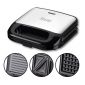 Мультимейкер 3 в 1 – універсальний пристрій для приготування гриль-страв, вафель та сендвічів. Завдяки змінним антипригарним пластинам ви зможете легко експериментувати з різними рецептами. Компактний дизайн та можливість вертикального зберігання дозволяють економити місце на кухні. Теплоізольована ручка, кришка із замком і нековзні ніжки забезпечують комфорт і безпеку під час використання. Стильне поєднання нержавіючої сталі та пластику додає пристрою сучасного вигляду, роблячи його практичним і елегантним доповненням до будь-якої кухні.
