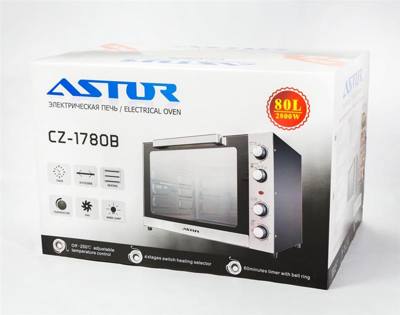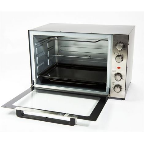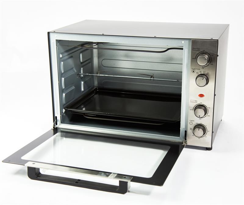 В комплект входят: эмалированный прямоугольный противень, хромированная решётка, 2 держателя, вертел, держатель для вертела, инструкция с рецептами.