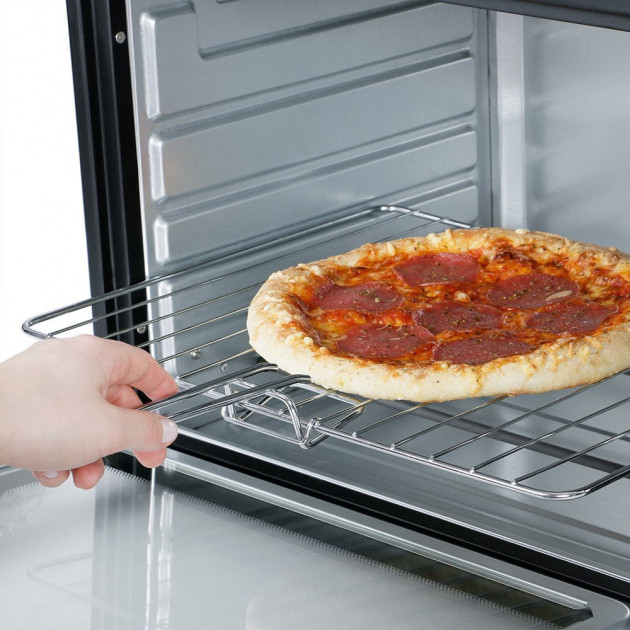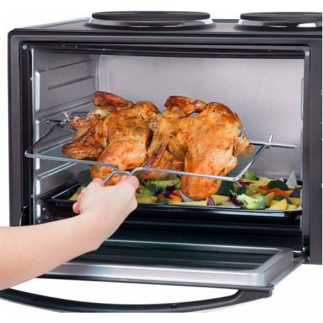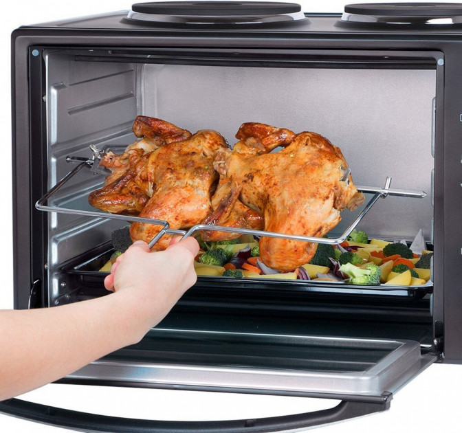 Готуйте та випікайте одночасно: містка міні-духовка пропонує сучасну технологію конвекції до 230°C, а також дві конфорки, що керуються окремо. Випікайте, смажте на грилі, смажте, тостуйте - рівномірна циркуляція тепла доводить кожну страву до досконалості, поки ви розслабляєтесь і дбаєте про повні каструлі на конфорках. Доступні три або чотири висоти вставки для роботи з верхнім нагріванням, нижнім нагріванням і конвекцією. Найкращі страви рівномірно і хрустко готуються на рожні, що обертається. Залишки їжі збираються на мобільному піддоні для крихт, який легко миється.