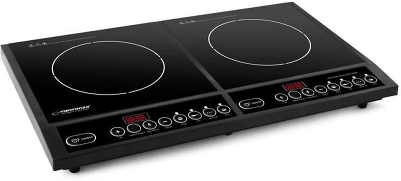 Настольная индукционная плита EKH008 от компании Esperanza оснащена двумя конфорками мощностью 2000 Вт и управляется сенсорными датчиками. Модель имеет дисплей и функцию автоопределения наличия посуды на нагревательной поверхности.
