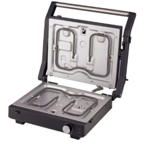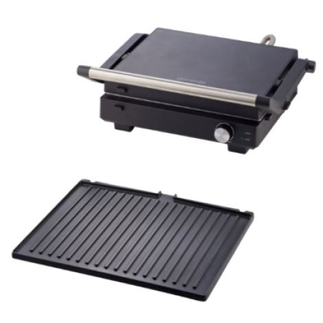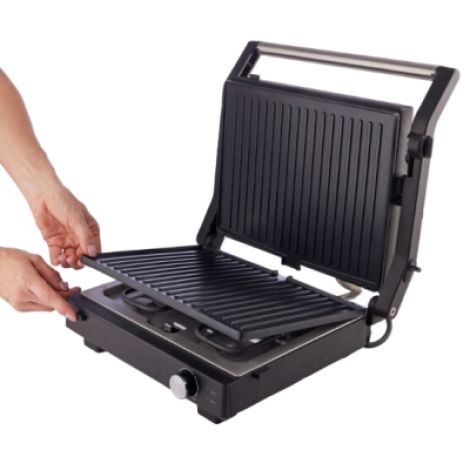 | Особливості | регульований термостат, індикатор роботи, відкриття на 180 °, знімні пластини, піддон для жиру, Контейнер для рідини Захисна защіпка Гумові ніжки Індикатор нагрівання Індикатор роботи Знімні пластини Піддон для збирання жиру Термостат Термоізольовані ручки, ручка, що не нагрівається, нековзні ніжки |