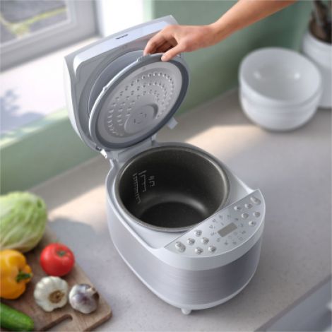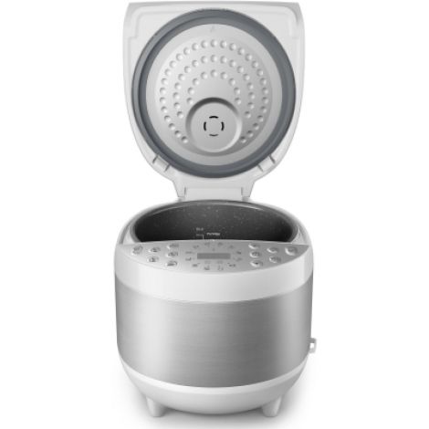 объем чаши - 5 л, тип внутреннего покрытия - антипригарное, алюминий, Управление - электронное, габариты - 24.5 х 26 х 37 см, вес - 3.48 кг