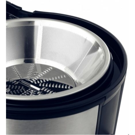 Увеличенное отверстие для загрузки фруктов и овощей без предварительного нарезания. Сито из нержавеющей стали обеспечивает высокую производительность. Высокий уровень безопасности: двигатель прибора включается только при условии правильного монтажа деталей и при закрытой крышке. 2 скоростных режима для твердых и мягких фруктов и овощей. Практичная форма носика с функцией DripStop, что обеспечивает чистую рабочую поверхность после приготовления сока.