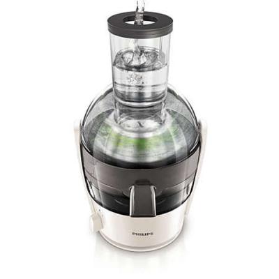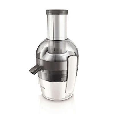 Мощность мотора 700 Вт, благодаря этому отжим сока происходит быстро и буквально в считанные минуты вы сможете насладится вкуснейшим витаминным напитком. В комплекте с  Philips HR1855/80 поставляется емкость для забора сока объемом 0,8 л и резервуар для жмыха емкостью 1,2 л. Управление устройством расположено на корпусе, здесь вы найдете небольшой механический переключатель с 1-й скоростью. Соковыжималка проста в уходе, ее детали легко моются, снимаются и собираются. Любая хозяйка по-достоинству оценит такой простой и надежный прибор.