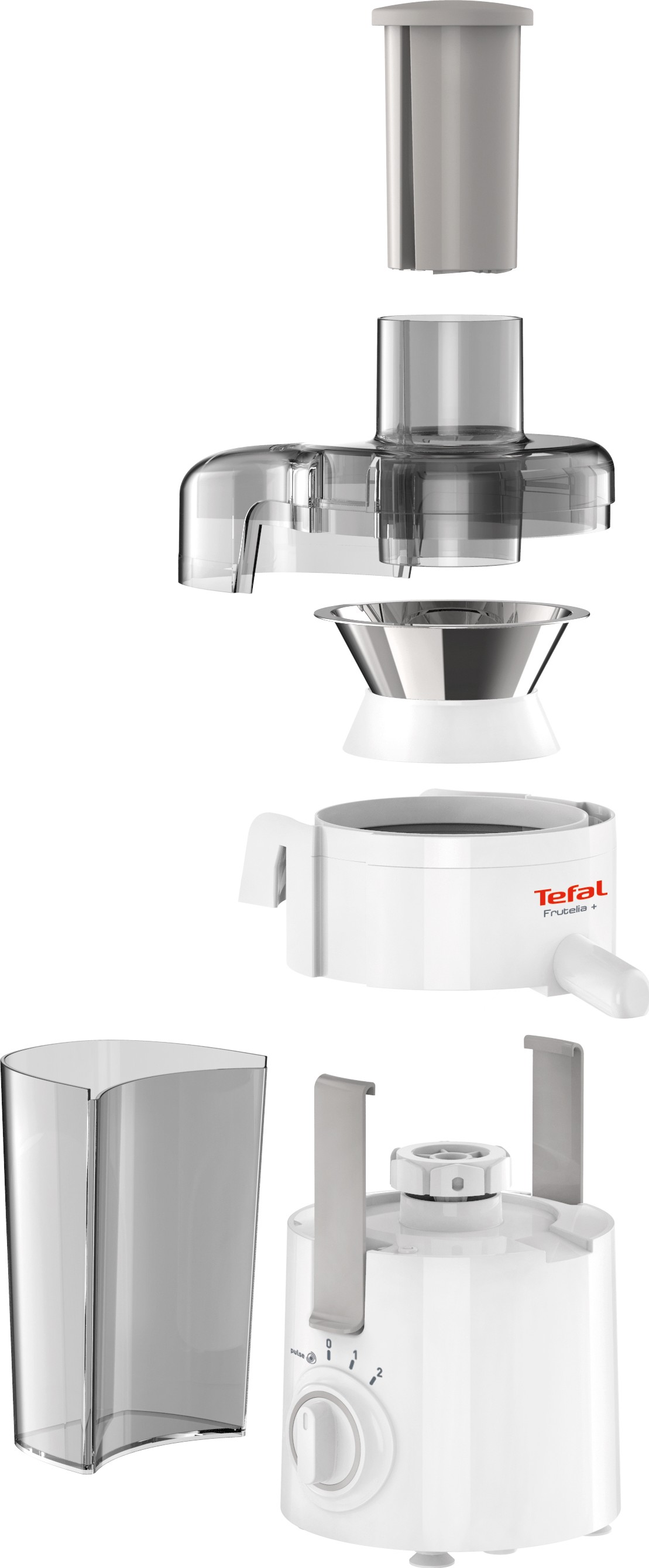 Соковыжималка Frutelia +: свежевыжатые здоровые соки Безупречные, здоровые и вкусные соки ежедневно! Соковыжималка Tefal Frutelia + позволяет делать отличные свежие фруктовые соки с непревзойденной легкостью. Широкое отверстие позволяет легко вставлять большие или целые кусочки фруктов, мощность 350 Вт вместе с 2-ступенчатой ??регулировкой и функцией импульса для безупречного смешивания всех ваших любимых ингредиентов. Фильтр из нержавеющей стали обеспечивает долговременную эффективность, а коллектор для мякоти объемом 950 мл обеспечивает идеальную мощность на любой случай. Удобный компактный корпус для удобного хранения и обеспечения безопасности, например, подставка против скольжения, делают Соковыжималку Frutelia + идеальным цетрифужным устройством для приготовления соков.