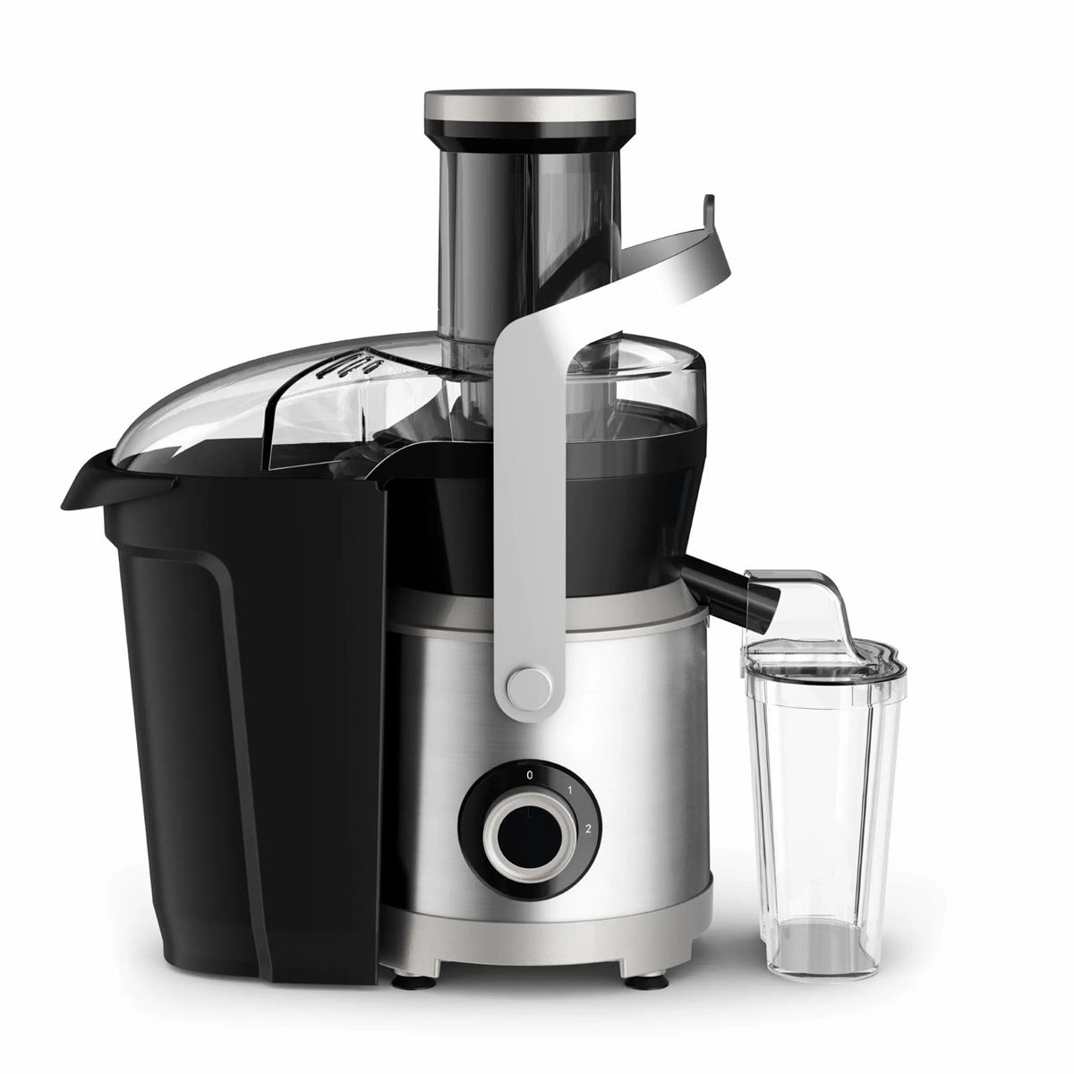 Довговічні, міцні матеріали Корпус з нержавіючої сталі та високоякісна алюмінієва ручка для легкого та довговічного використання. Вибирайте свою швидкість 2 універсальні швидкості – ідеально підходить як для м’яких, так і твердих інгредієнтів. Ідеальний контейнер для м’якоті У контейнері для м’якоті об’ємом 2.2 л достатньо місця для залишків після щедрого вичавлювання соку, а завдяки ергономічному дизайну його легко очищати. Оптимальний контейнер для соку Контейнер для соку 0.8 л ідеально підходить як для порцій на одного, так і для всієї родини, а піновідділювач забезпечує бездоганний кінцевий результат.
