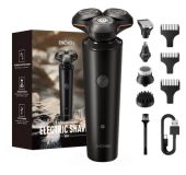 Електробритва MG-689 для вологого і сухого гоління з трьома рухомими бритвеними головками забезпечить ідеальний результат за рахунок щільного прилягання обертаються лез до шкіри. Ця модель роторної бритви з якісними подвійними лезами і систему повторення контурів делікатно ставиться до шкіри. Акумулятора після 8-ми годинної зарядки вистачає на 30 хвилин автономної роботи. Доглядати за бритвою простіше простого, досить просто промити її ріжучий блок під проточною водою не більше 5-ти секунд. Три плаваючих головки, тріммер для підрівнювання скронь, ергономічна рукоятка роблять використання приладу комфортним і безпечним.